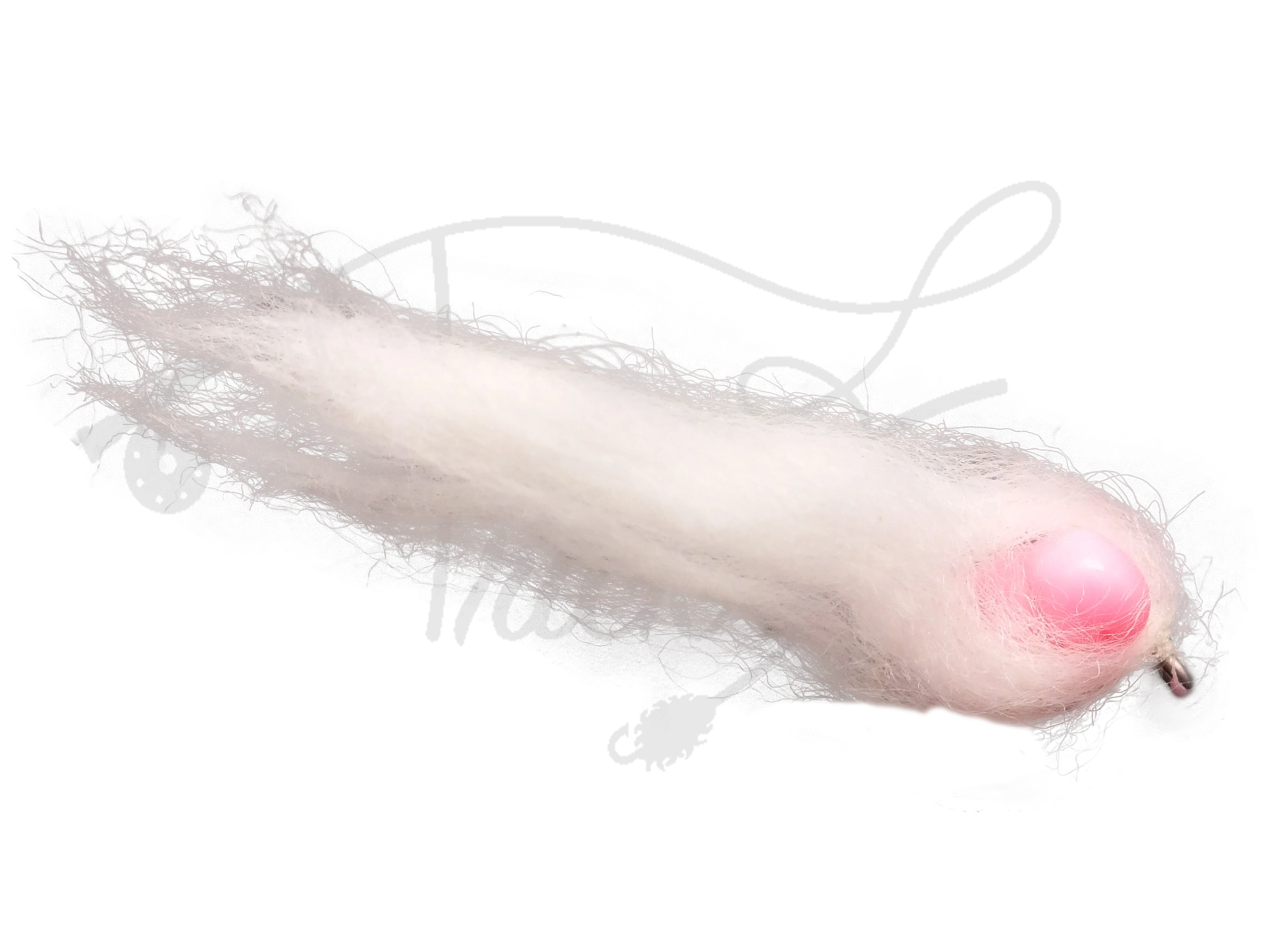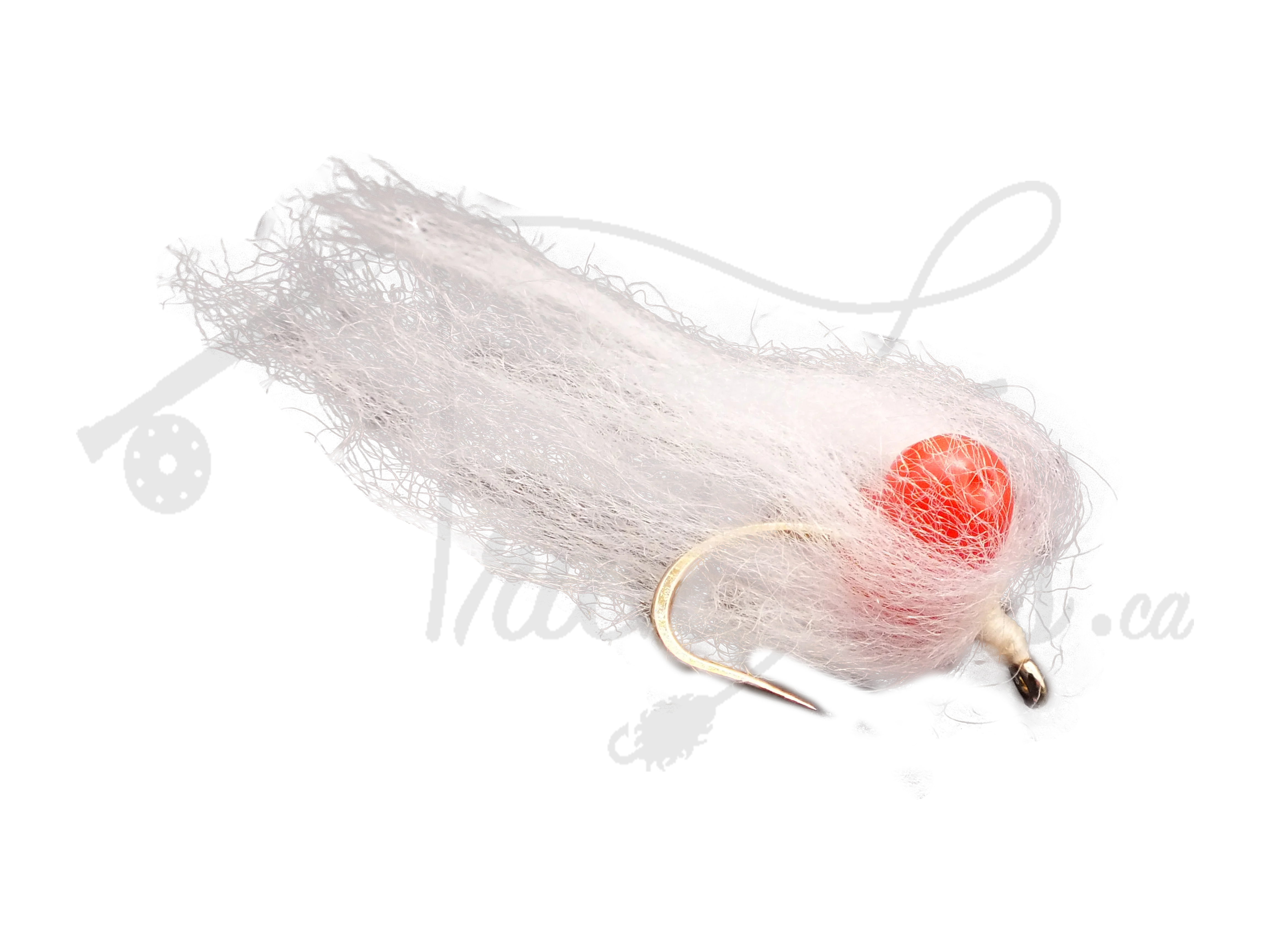Glowbug egg peach fly fishing lure with fluffy peach material on hook