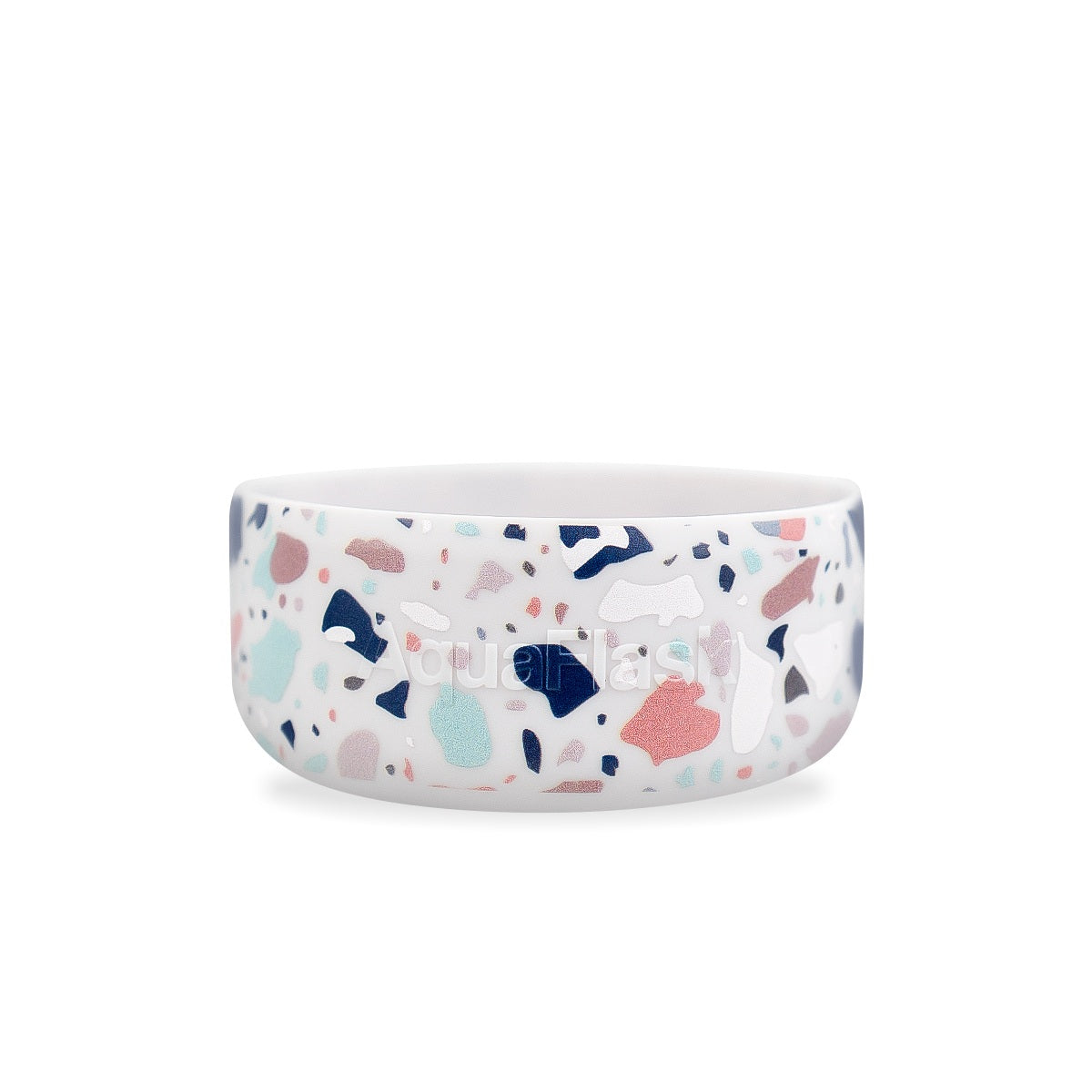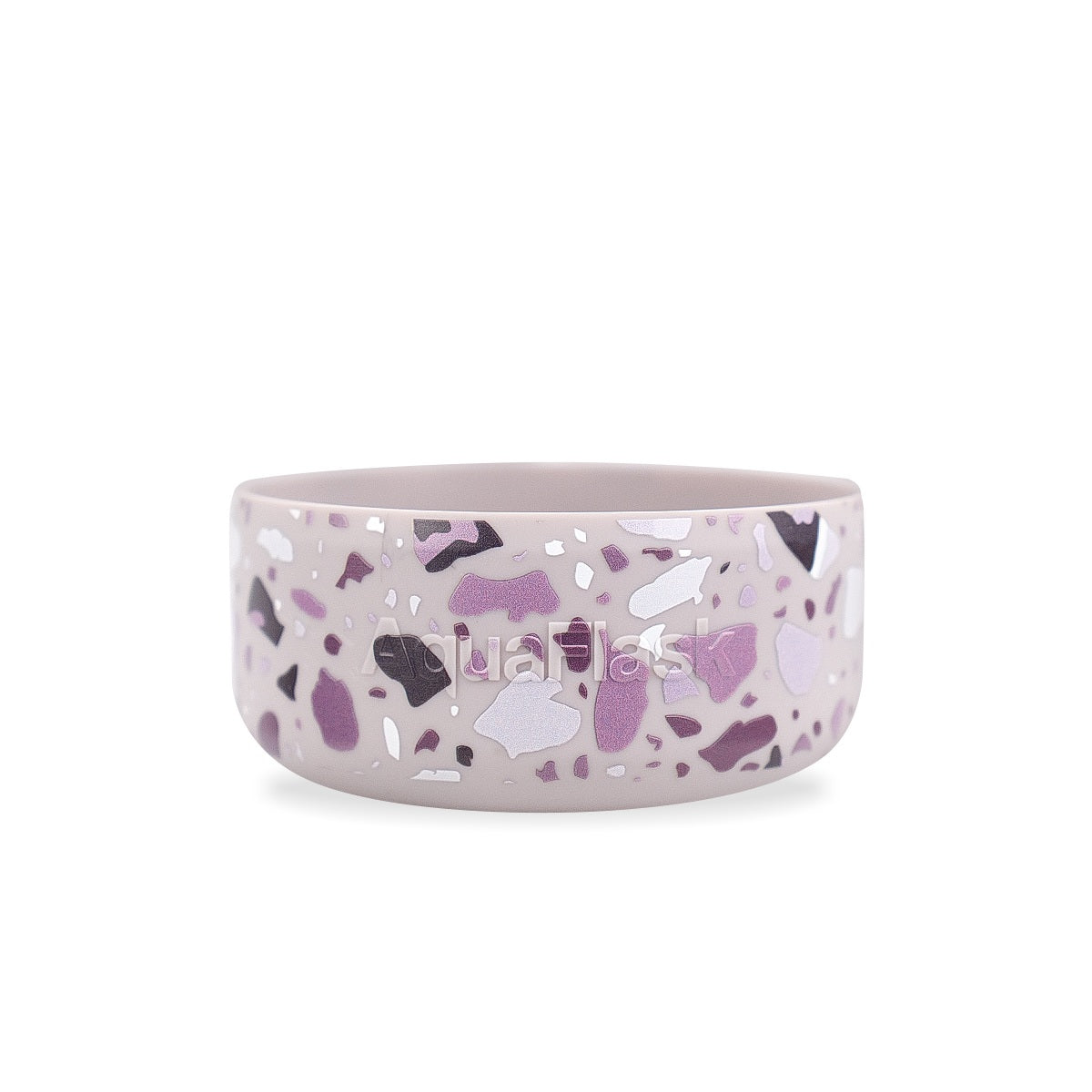 AquaFlask 64oz stone gray insulated water bottle with box, hot cold temperature icons.