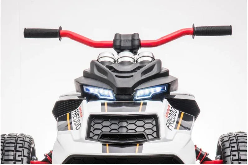 The Spider Ride-On 3 Wheel Motorcycle offers an exhilarating adventure for kids aged 3 to 7 years. It's powered by a 24V battery and features two 45W motors, allowing for speeds between 2.7 to 5.4 MPH. Kids can enjoy music through the USB slot with MP3/AUX input and Bluetooth connectivity, and the ride is illuminated by LED lights. This 3 Wheel Motorcycle is equipped with a sturdy rear suspension for smooth rides and comes with a 2.4G remote control for parental supervision. With up to an hour of running time, this 3 Wheel Motorcycle is perfect for outdoor fun.