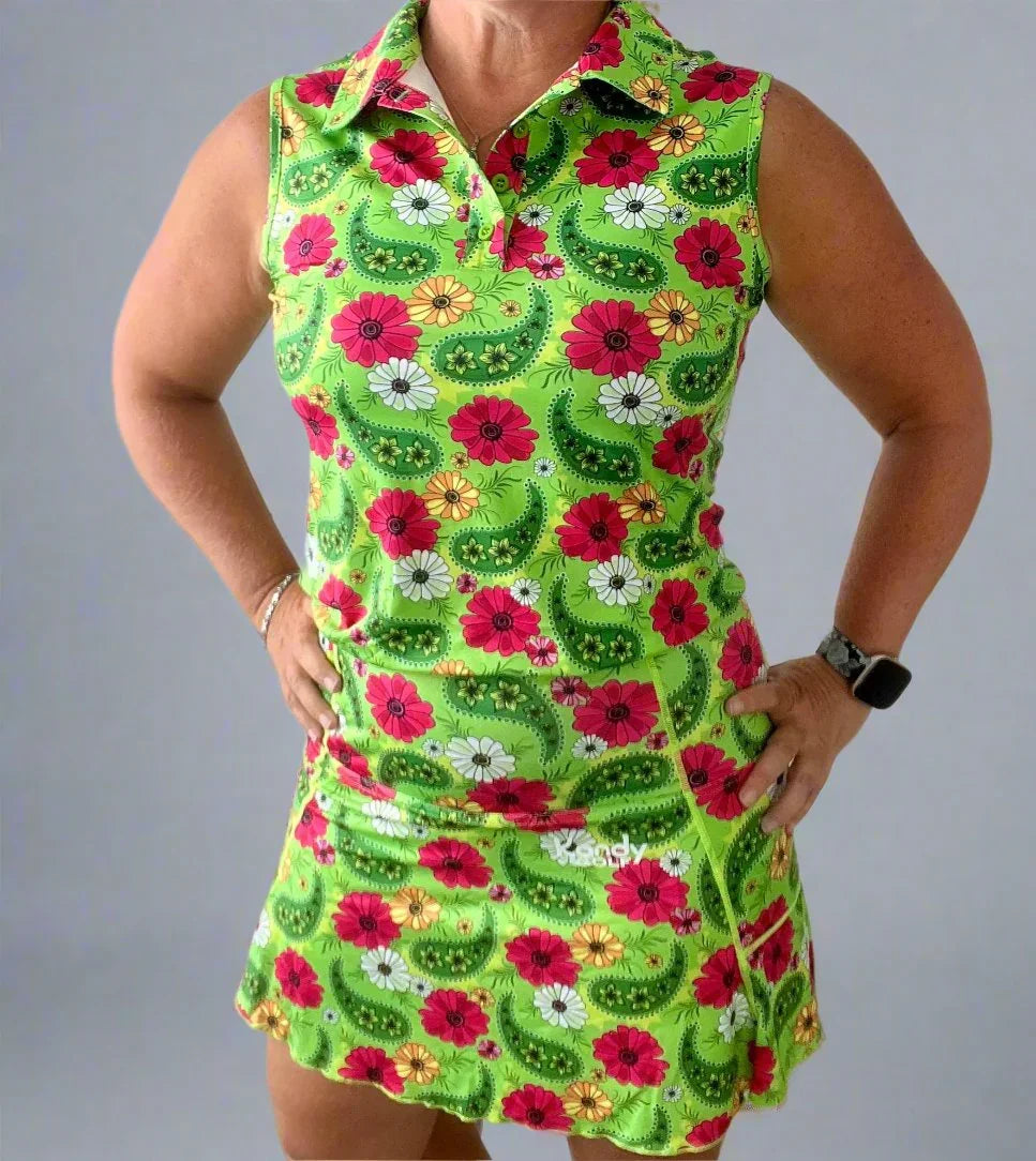 Our sleeveless polo, complete with a button-up collar, ensures a cool and stylish look whether you're teeing off or relaxing post-game. Designed to rest just below the hip, it offers versatility—wear it tucked or untucked for a comfortable fit.