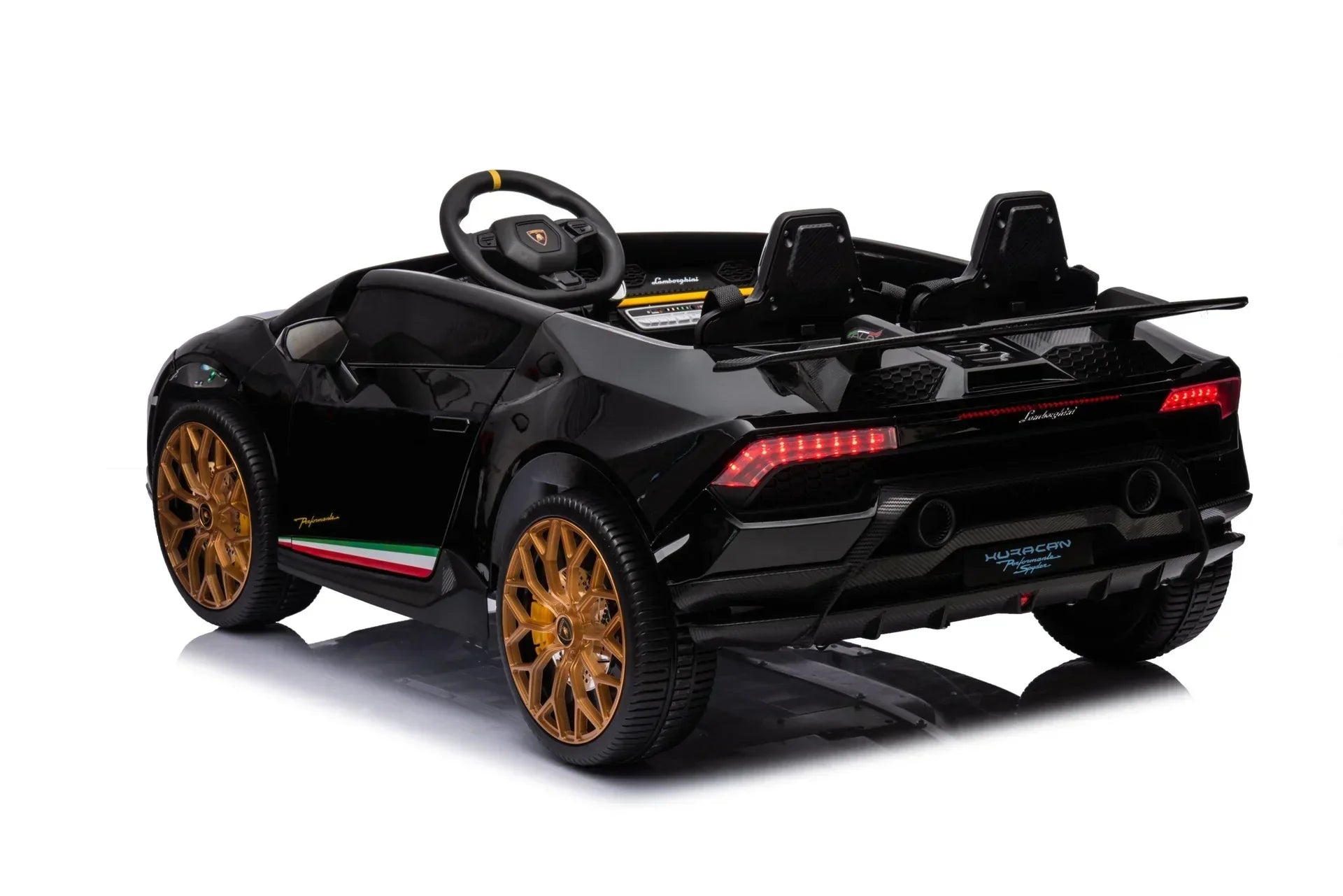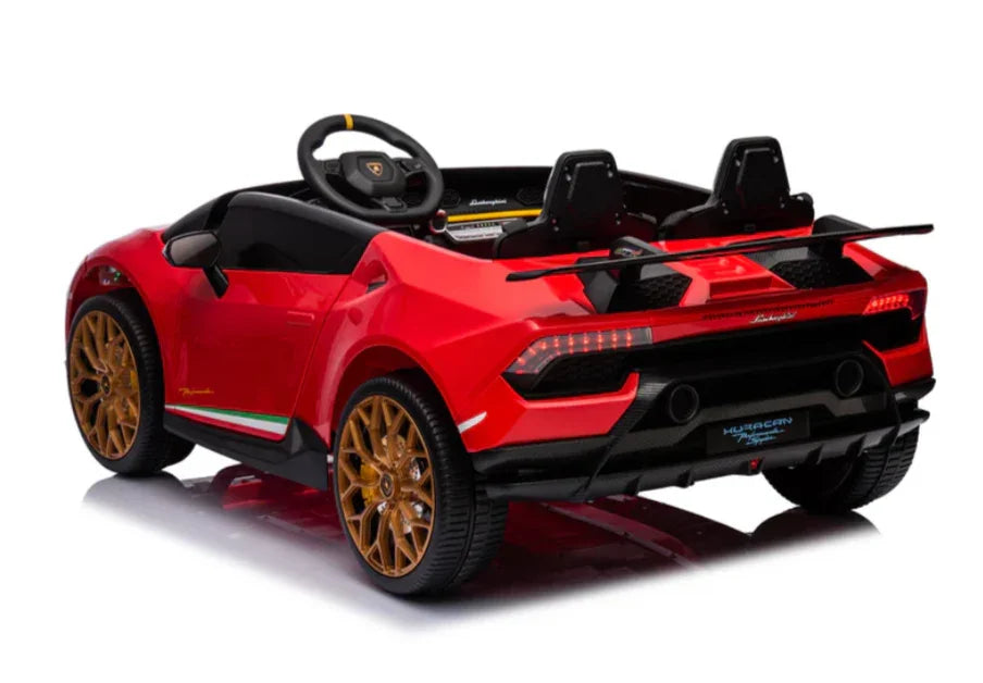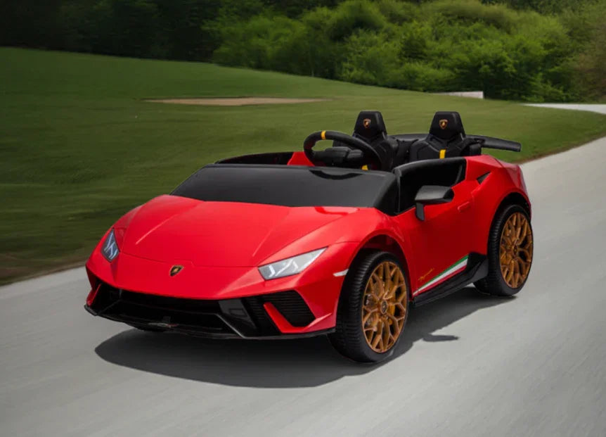 The 2026 Lamborghini Huracan 24V ride-on car is crafted to captivate with its stunning design and exceptional performance. Perfect for children aged 3 to 8 years, this deluxe ride-on features a powerful 24V battery that provides 1-2 hours of playtime. Equipped with luxurious dual leather seats, vibrant LED lights, a convenient USB port, and a power display, it ensures an authentic driving experience. For music enthusiasts, the car includes a Bluetooth speaker and FM radio. Safety is prioritized with a 2.4G remote control for parents, an emergency stop button, and sturdy EVA tires. With adjustable speeds, a smooth suspension system, and a maximum weight capacity of 59 kg, this electric car is the ultimate gift for young driving aficionados.