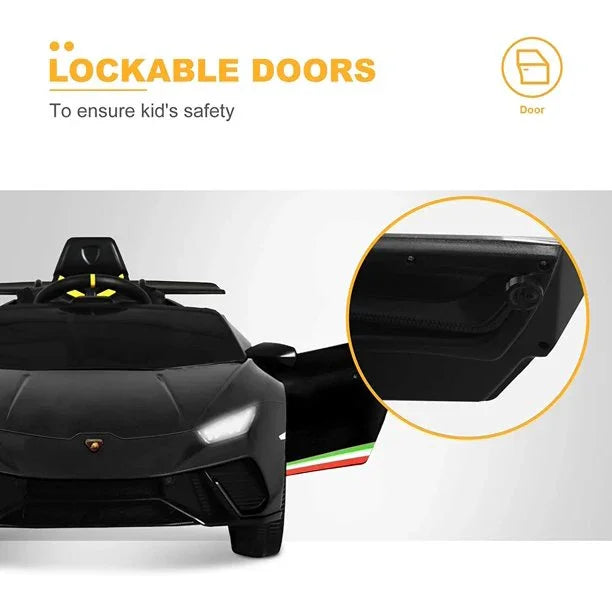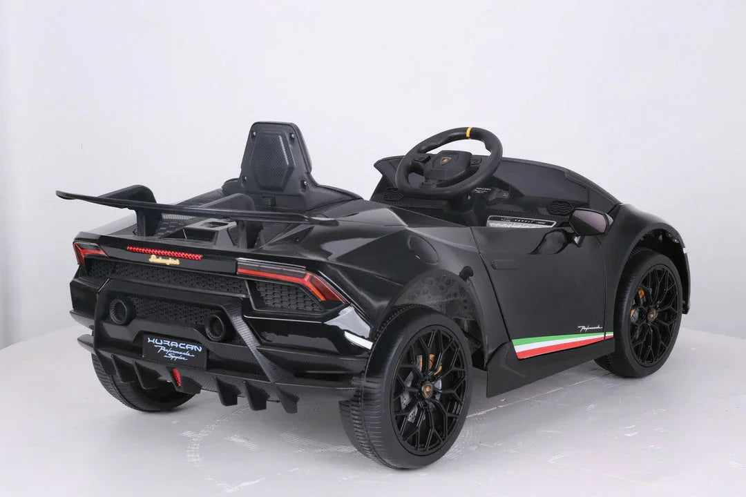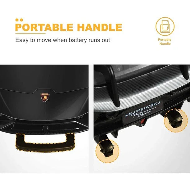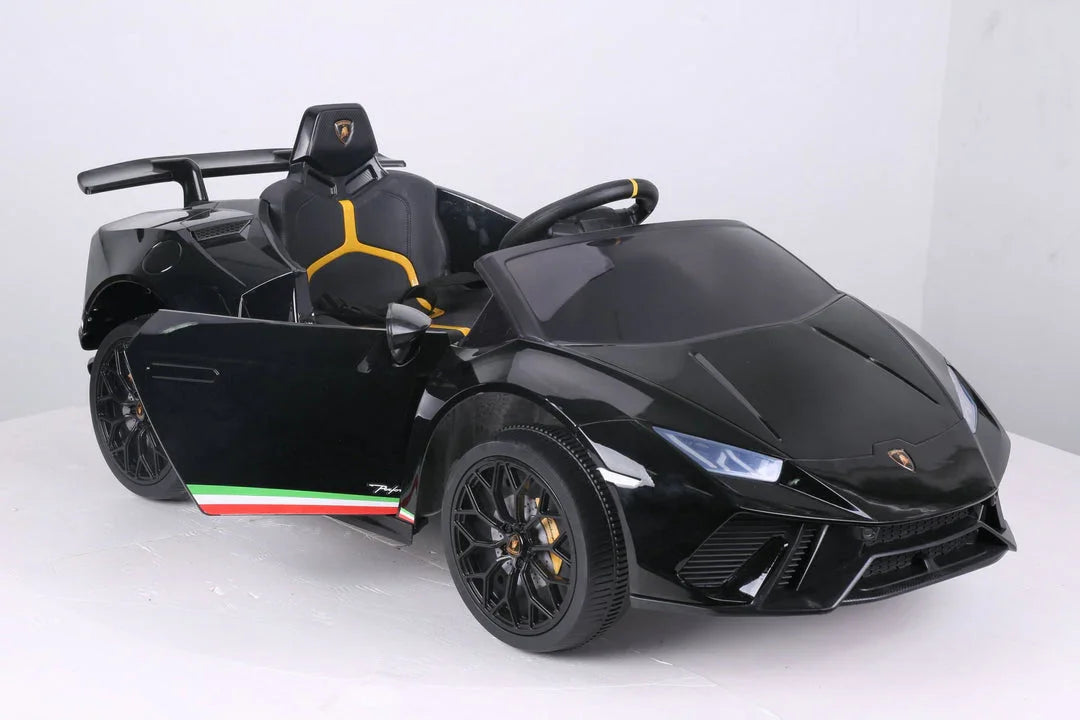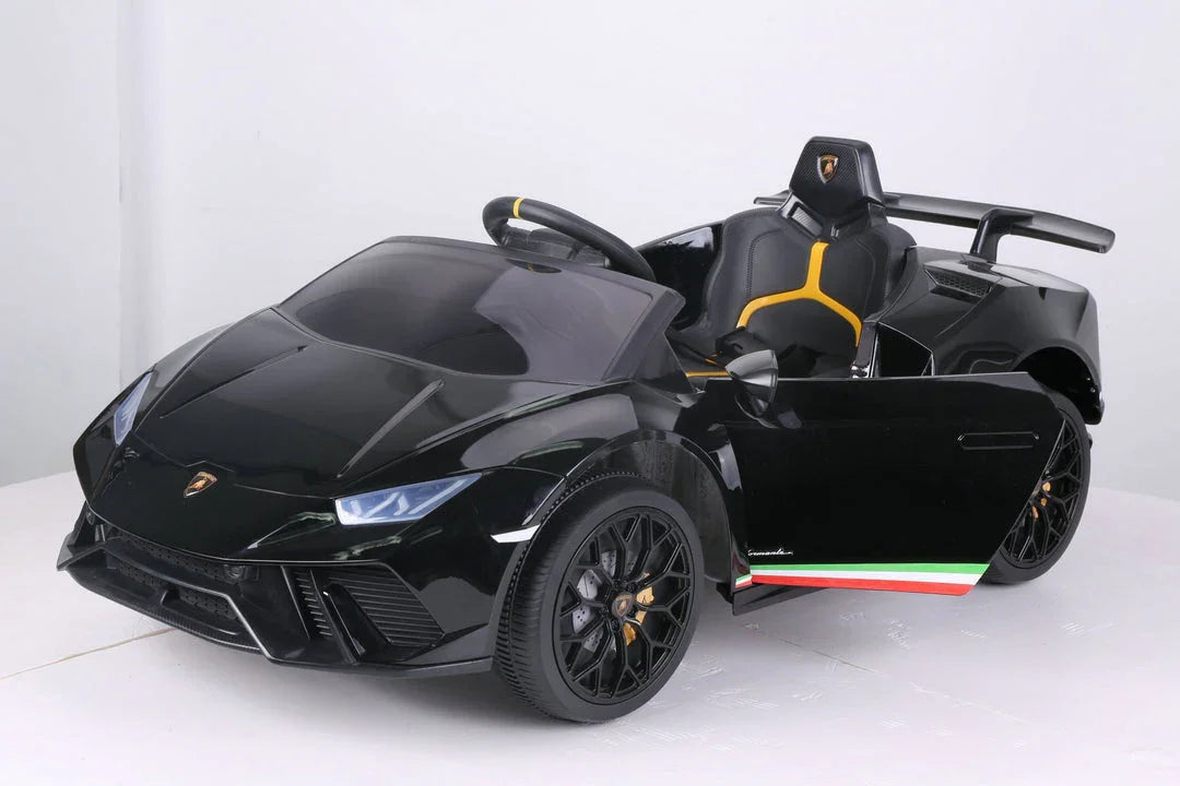 Experience the thrill of driving in style with the 2026 12V Lamborghini Huracan DELUXE Kids Electric Ride On Car. This battery-powered motorized vehicle comes equipped with features like remote control, LED lights, a music player, and opening doors, ensuring an exciting and safe ride for your little one. Now featuring a luxurious leather seat and durable rubber tires for enhanced comfort and performance!