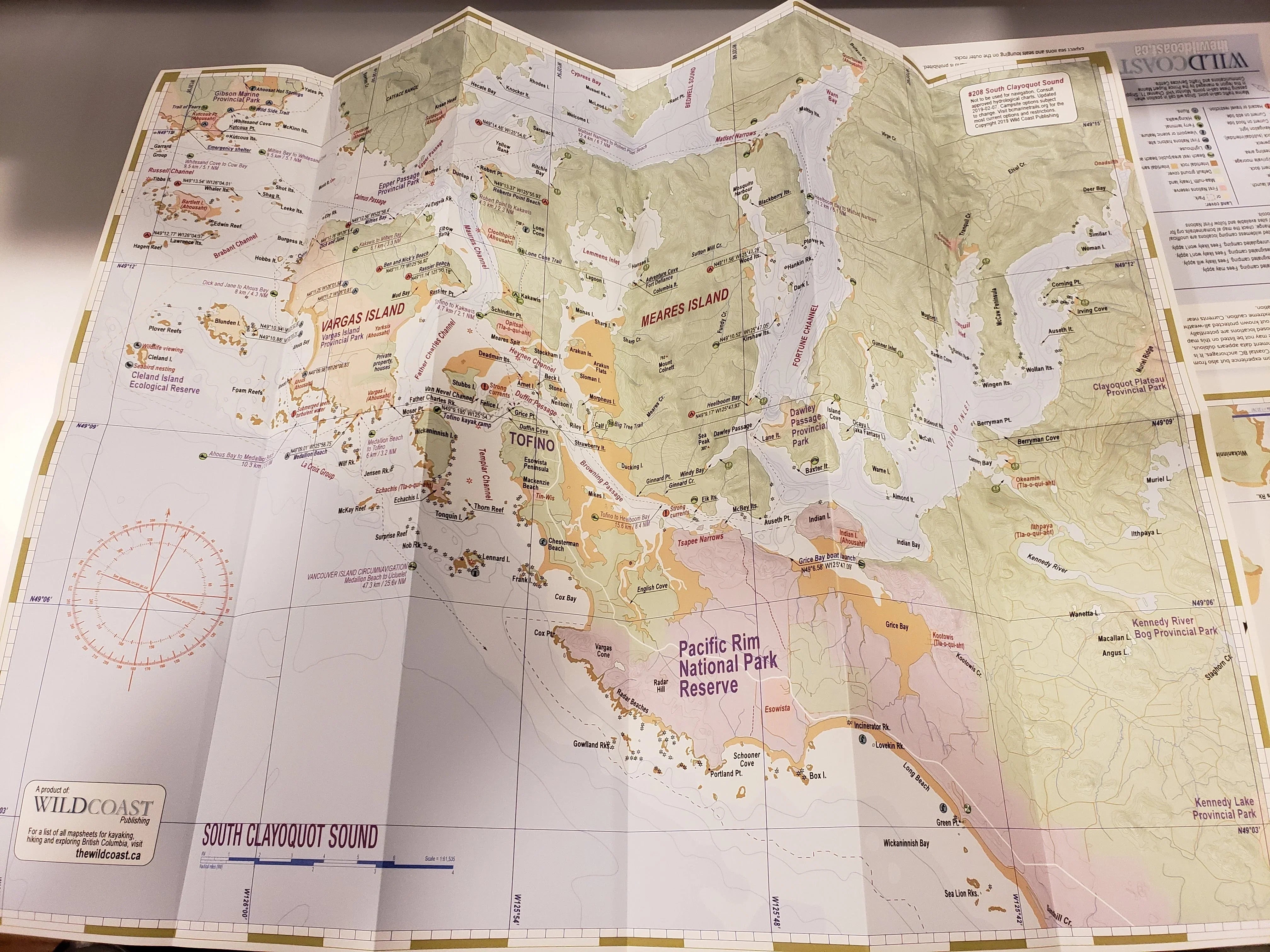 About the Wild Coast map series: In 2019, Wild Coast Publishing began embarking on an ambitious program to provide an unbroken series of mapsheets covering the entire BC coastline. The series begins with mapsheet #201 Brooks Peninsula and extends in order down the outer Vancouver Island and up the southern BC coast then finally north through the Inside Passage. You can view the currently available list of mapsheets here. The maps are designed for paddlers and boaters, right down to the size -- a handy 24x18", slightly smaller than a traditional street map and so easy to manage when on the water. Use it as a "deck topper" for easy visualization as you travel on the water, use it around the campfire or your anchorage at night to plan your next day's route, and at home for research when your journey is still in the dream stage.