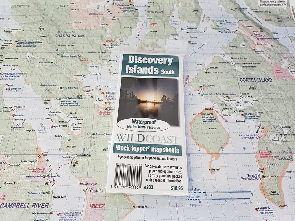 Depth soundings are not included. This Deck Topper series is intended to augment marine travel and not to be used for technical motorized vessel navigation or to replace approved Hydrographic Services charts. Kayakers, canoeists and other self-propelled craft that do not require depth soundings for transit will find it sufficient for travel without other resources. Hikers can use this mapsheet series to locate hikes in the Discovery Islands.