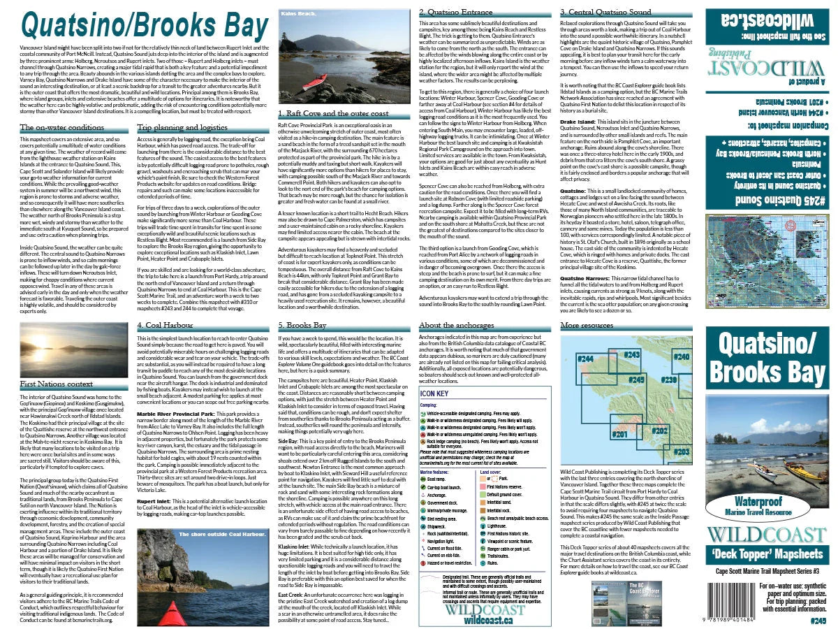 A note about scale: This mapsheet and adjacent mapsheet #244 differ from the other "Deck Topper" mapsheets produced by Wild Coast Publishing by being a slightly different scale. The scale for this mapsheet is consistent with the Chart Assistant series and mirrors some of the content of #306 with additional information for trip planning and logistics.