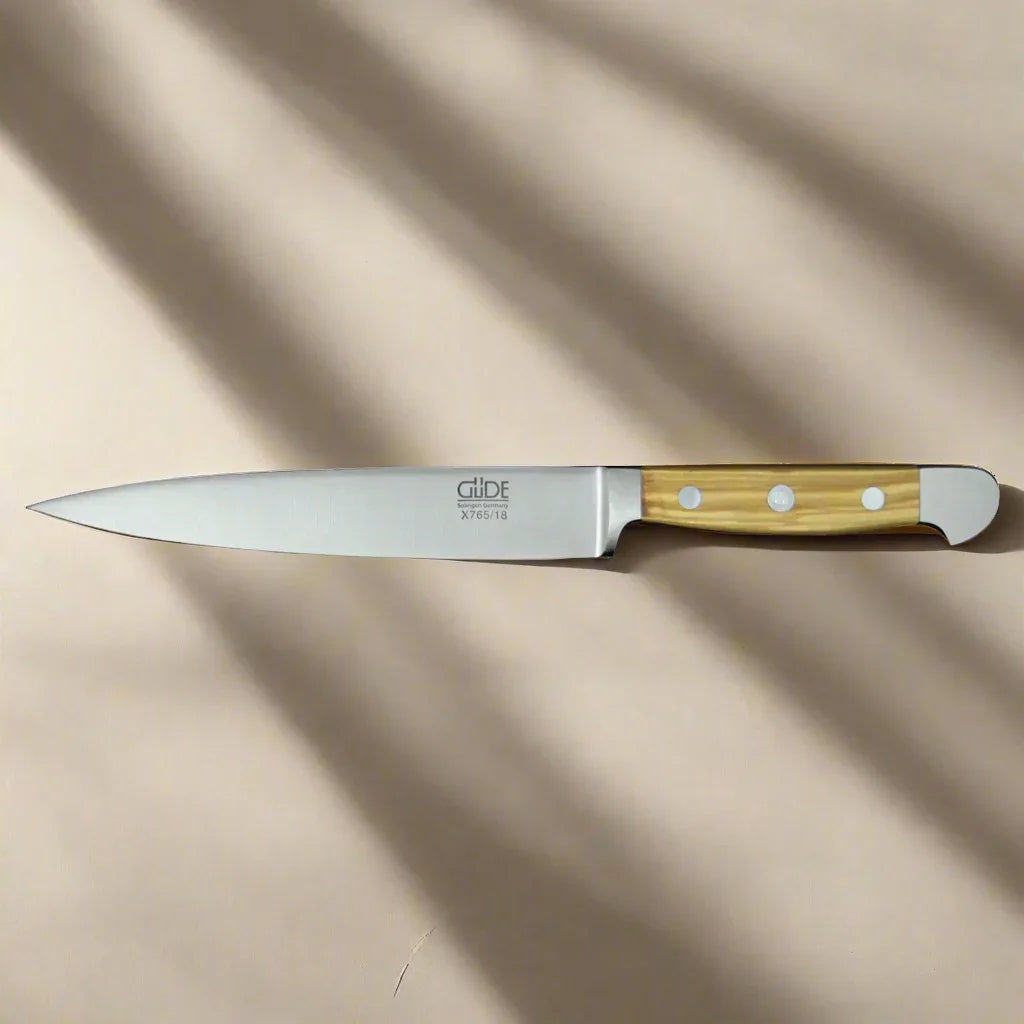 Crafted for culinary finesse, the GÜDE 18cm Fillet Knife boasts a premium stainless steel blade designed for effortless filleting of fish and delicate proteins. The ergonomic handle ensures a comfortable and secure grip, elevating your precision in the kitchen. Perfect your filleting skills with the GÜDE 18cm Fillet Knife, a harmonious blend of superior craftsmanship and functionality for exceptional results.