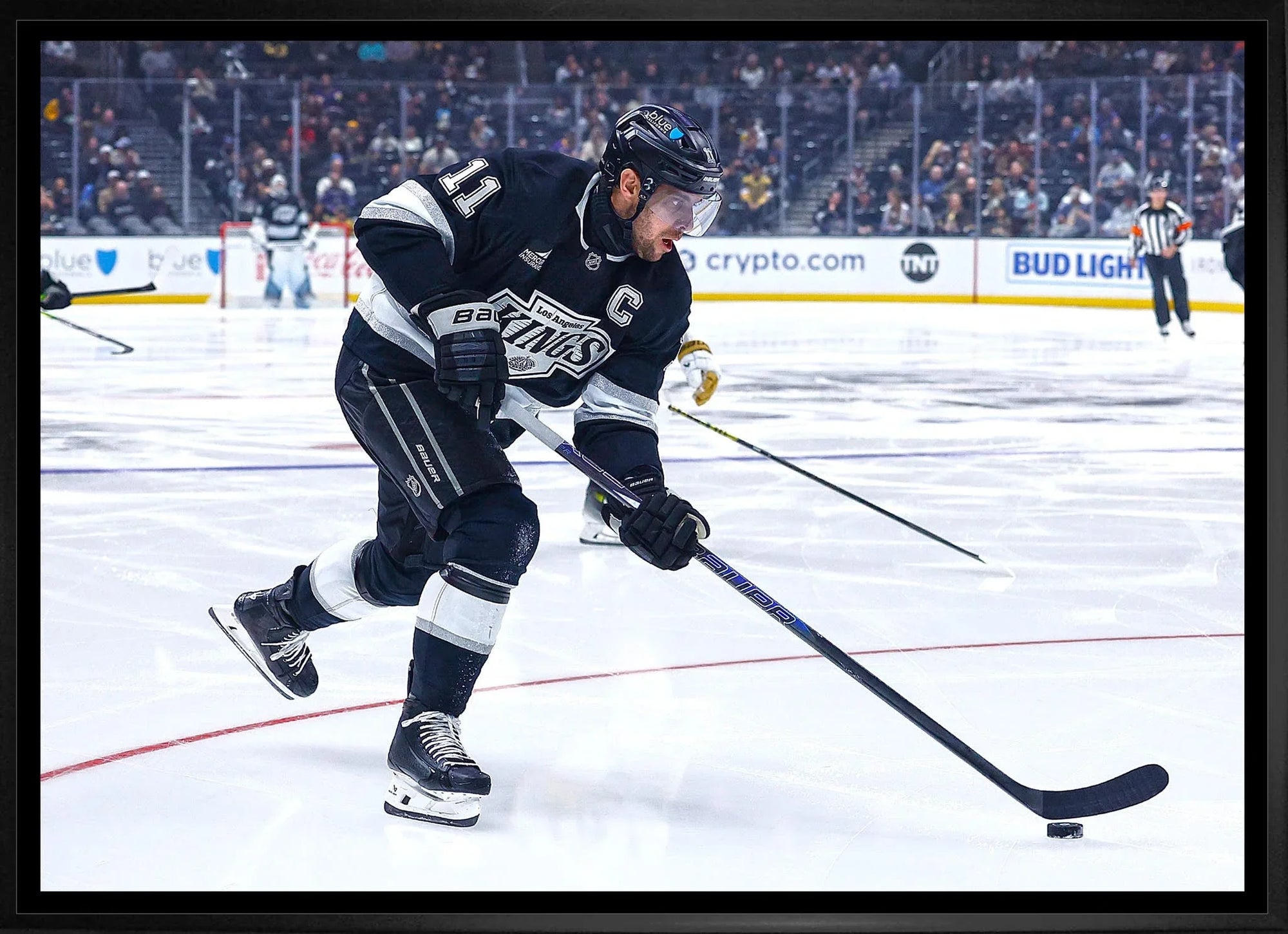 This image of Anze Kopitar is printed on high quality art canvas and then professionally stretched and framed. This canvas is officially licensed by the National Hockey League (NHL) and National Hockey League Players Association (NHLPA). Made in Canada.. Finished Size: 31.5 x 22.5"