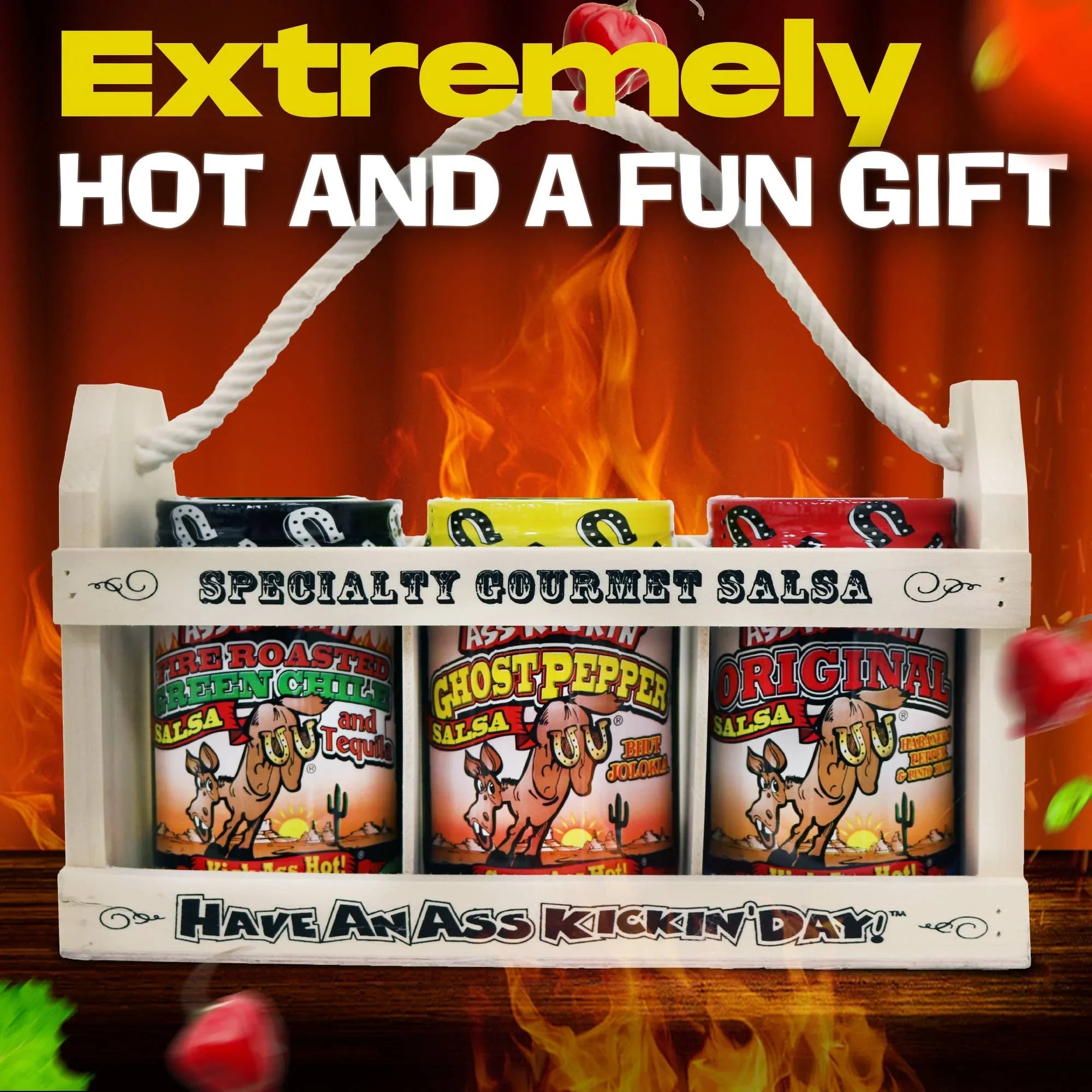 Discover the ultimate salsa experience with the Ass Kickin’ Salsa Wooden Crate Gift Set, perfect for spice enthusiasts and food lovers seeking bold flavors to elevate their meals or impress as a thoughtful gift.