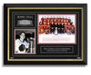 This double photo features Bobby Hull with his 1961 Stanley Cup & the 1961 Chicago Blackhawks Stanley Cup champions. A limited edition, numbered out of 161 in existence. The item is hand signed and beautifully presented in a museum quality frame, measures 33 x 24 inches. It comes with a Certificate of Authenticity and Hologram.