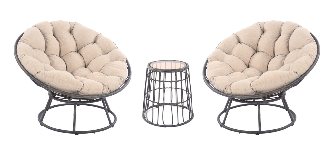 Bring the style of your living room outdoors. Modern and effortlessly cool, the Blakeley Papasan outdoor chairs have generously sized seats that invite indulgent relaxation. The cloud-like cushions are plush and supportive, made with tie downs so they're always in place. Paired with an open-weave bistro table, this set is the perfect companion to a sunny day.