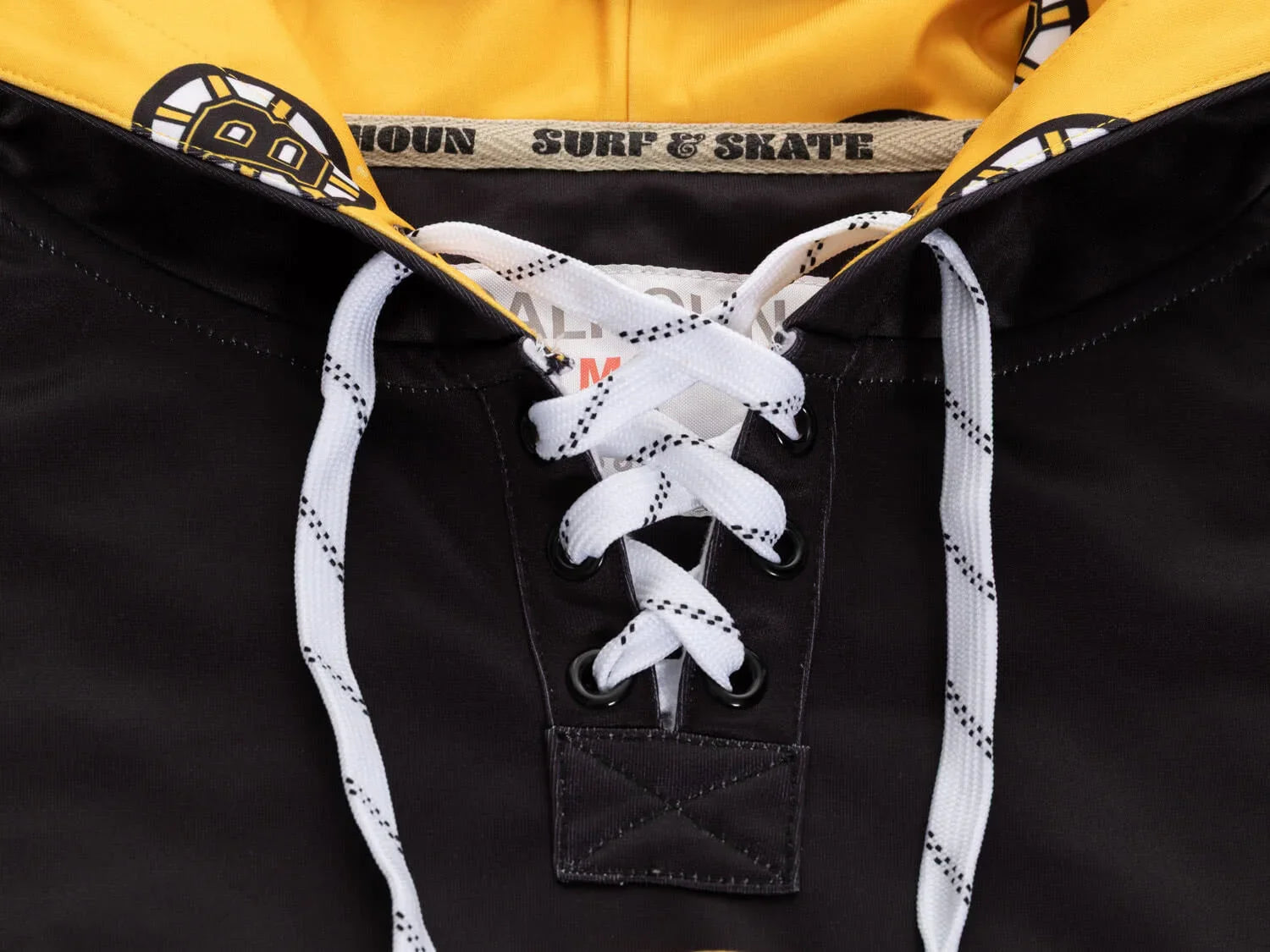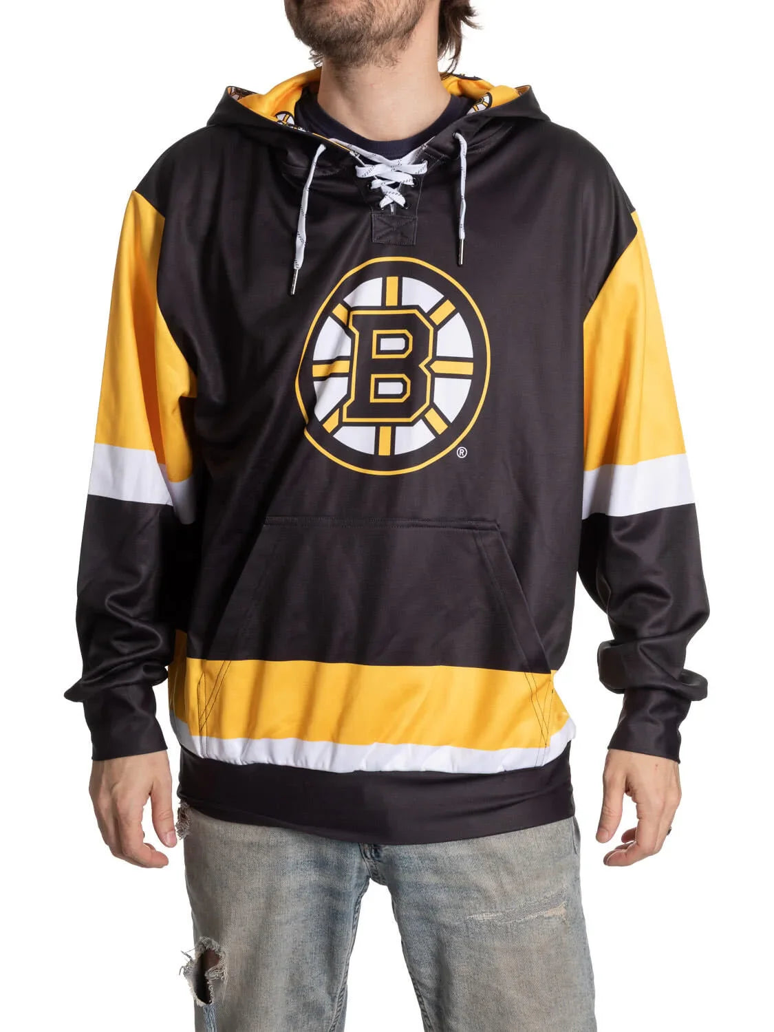 Lace up in style this season with our new Official Licensed NHL Boston Bruins Hockey Lace Hoodie. Styled in Boston Bruins team colours, this hoodie shows off your Bruins pride in style!