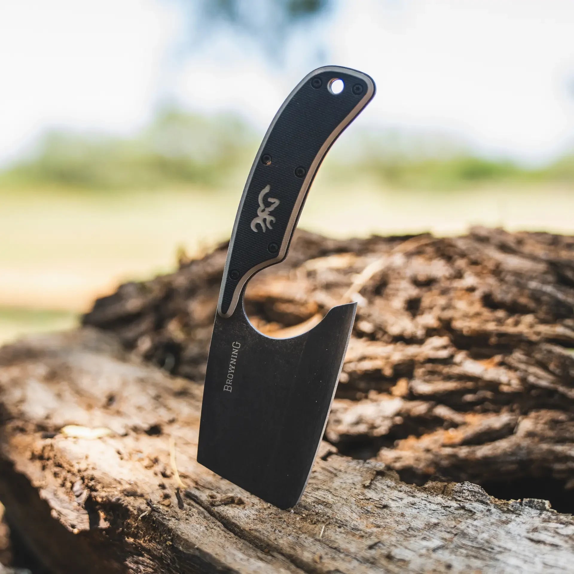 Compact cutter. The Cutoff Camp Cleaver is perfect for the camp kitchen at deer and elk camp. With a total length of 6-1/4", the cleaver is easily packable and adding only minimal extra weight. The 2-1/2" stainless steel blade retains its edge and easily sharpens. Full-tang construction is provides great balance and is incredibly durable when facing tough cuts. The two tone G-10 handle scales offer a secure grip. An included nylon belt sheath keeps the blade's edge secure when not in use.