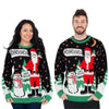 On the surface, this sweater is the perfect depiction of a Christmas night – a black sky lit up with shining stars; trees covered in snow, a snowman with the perfect nose and accessories and a cheery Santa. Turn it around though, and you get a real sense of the mayhem. A disheveled snowman, Santa’s forgotten to pull up his pants all the way and his emotions are well, a bit too unfiltered. If you too struggle to keep your unfiltered thoughts to yourself this season, we suggest wearing this so your clothes can do the talking for you!