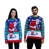 This classic piece shows Santa in all his red glory with a golf club, falling snowflakes on the back and diamond sleeves. We also want to acknowledge the effort that went into making this ugly Christmas sweater really pop; we thought, why stop at red? Also add a mix of green and blue to make it REALLY worth it!