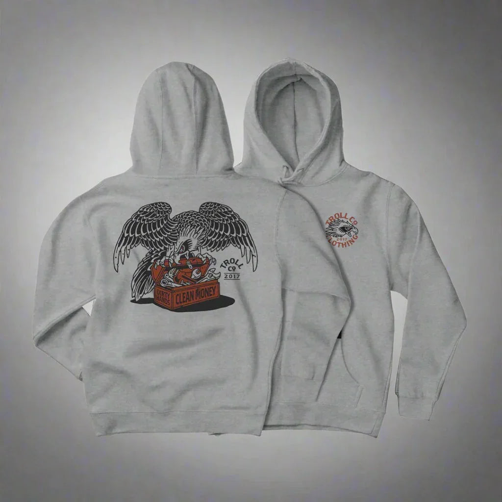 The DHCM Eagle Eye Hoodie is made for those who put in the work, stay sharp, and take pride in every cent earned through skill and effort. Featuring a bold eagle and toolbox graphic with the "Dirty Hands Clean Money" motto, this hoodie embodies the grit, focus, and determination of the blue-collar lifestyle.