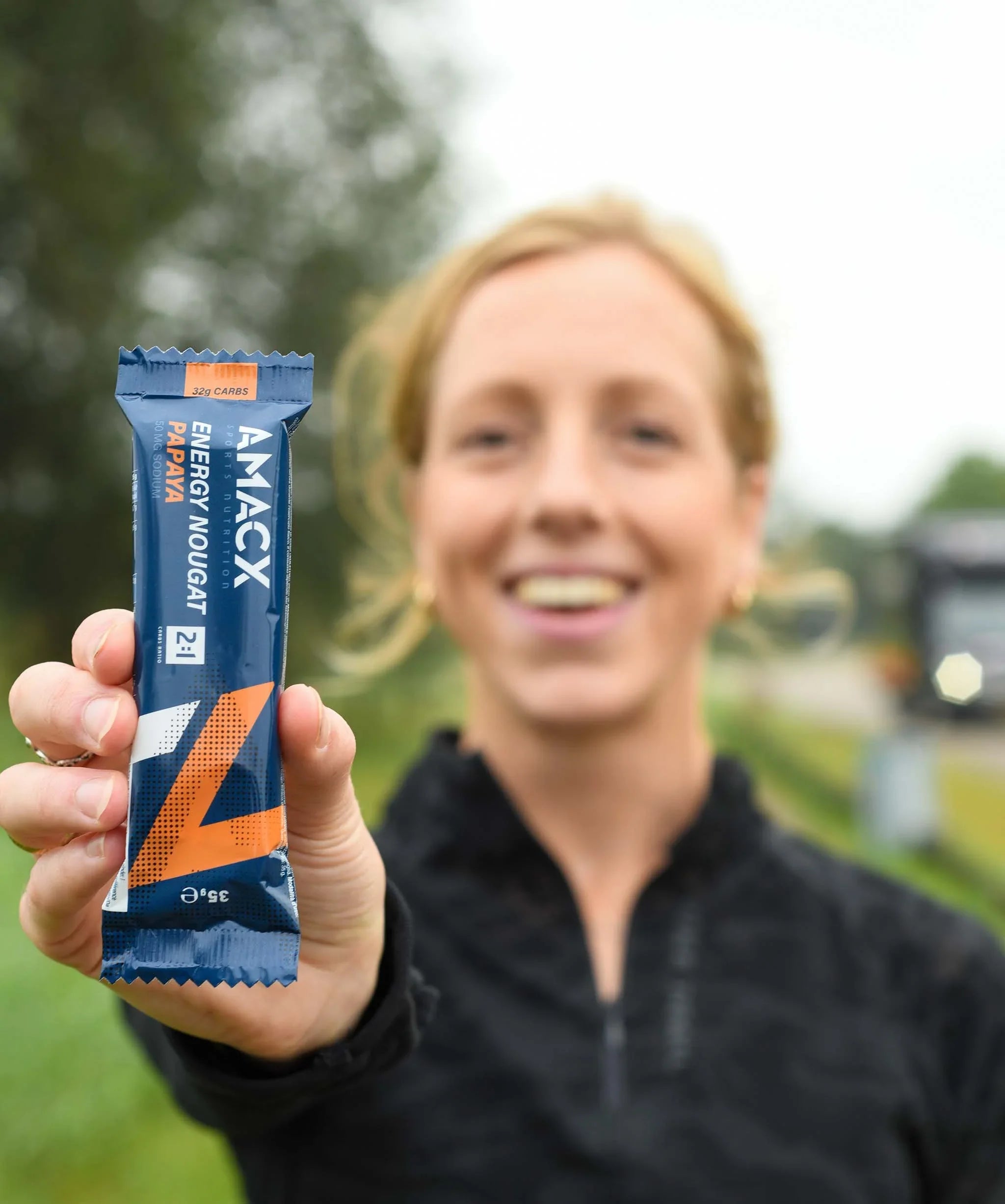 An ideal energy bar that is welcome at any (sports) moment, which consists of the well-known 2:1 carbohydrate ratio (glucose:fructose). In addition, 50mg of sodium has been added to ensure that, in addition to your glycogen, your salt reserves are immediately refilled during exercise. The bar is easy to eat because of its soft texture and thanks to its two fruity flavors: Cranberry and Papaya. But beware, the bar is so tasty that you will crave it even while exercising...