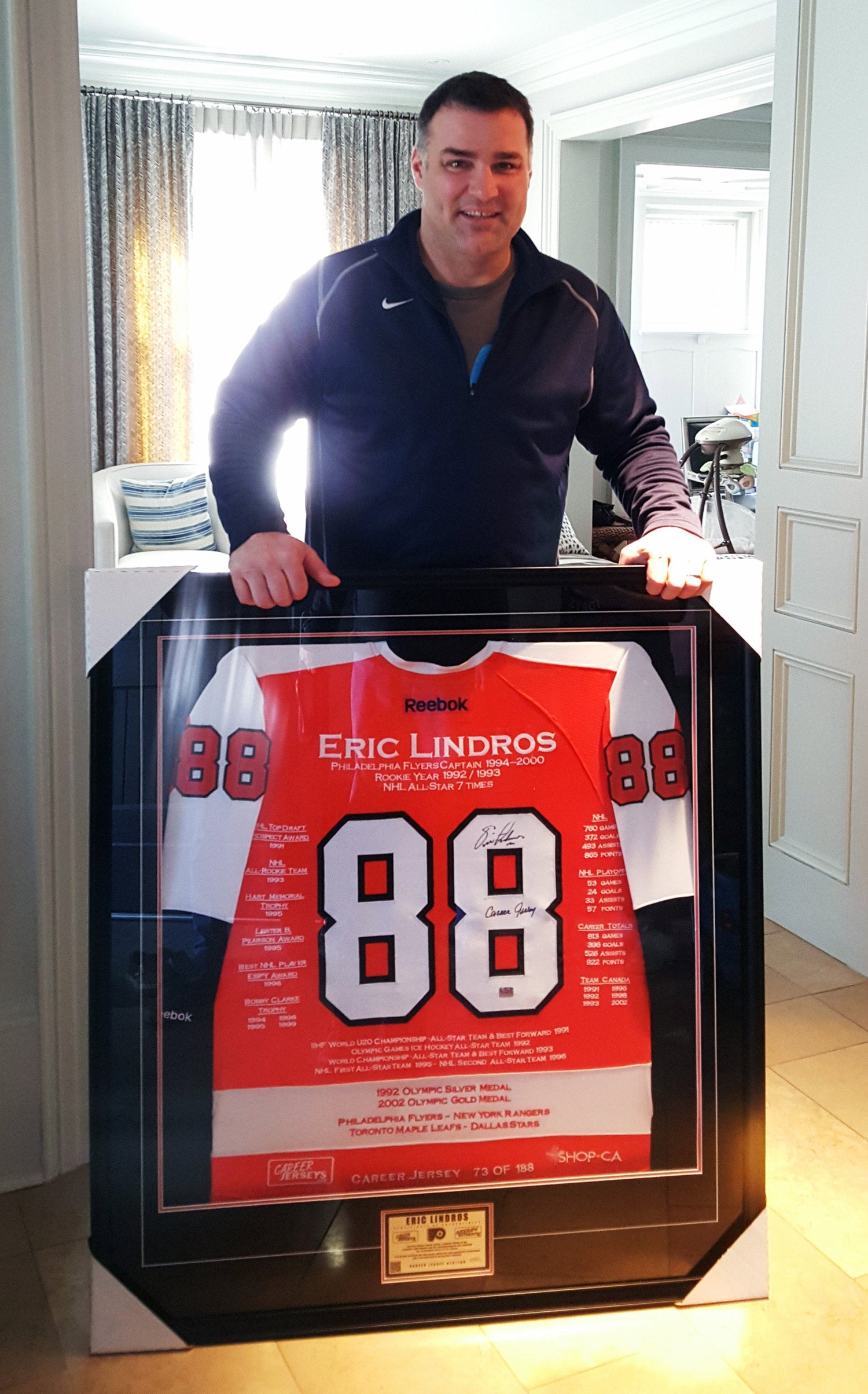 The Eric Lindros Career Jersey is an autographed limited edition jersey, very rare and a great investment. The jersey is custom made with the accomplishments that highlighted his memorable career and numbered out of the 188 that exist. It comes with a Certificate of Authenticity matching the edition number and guaranteeing the autograph. Do not miss this opportunity to own a true piece of Hockey History.