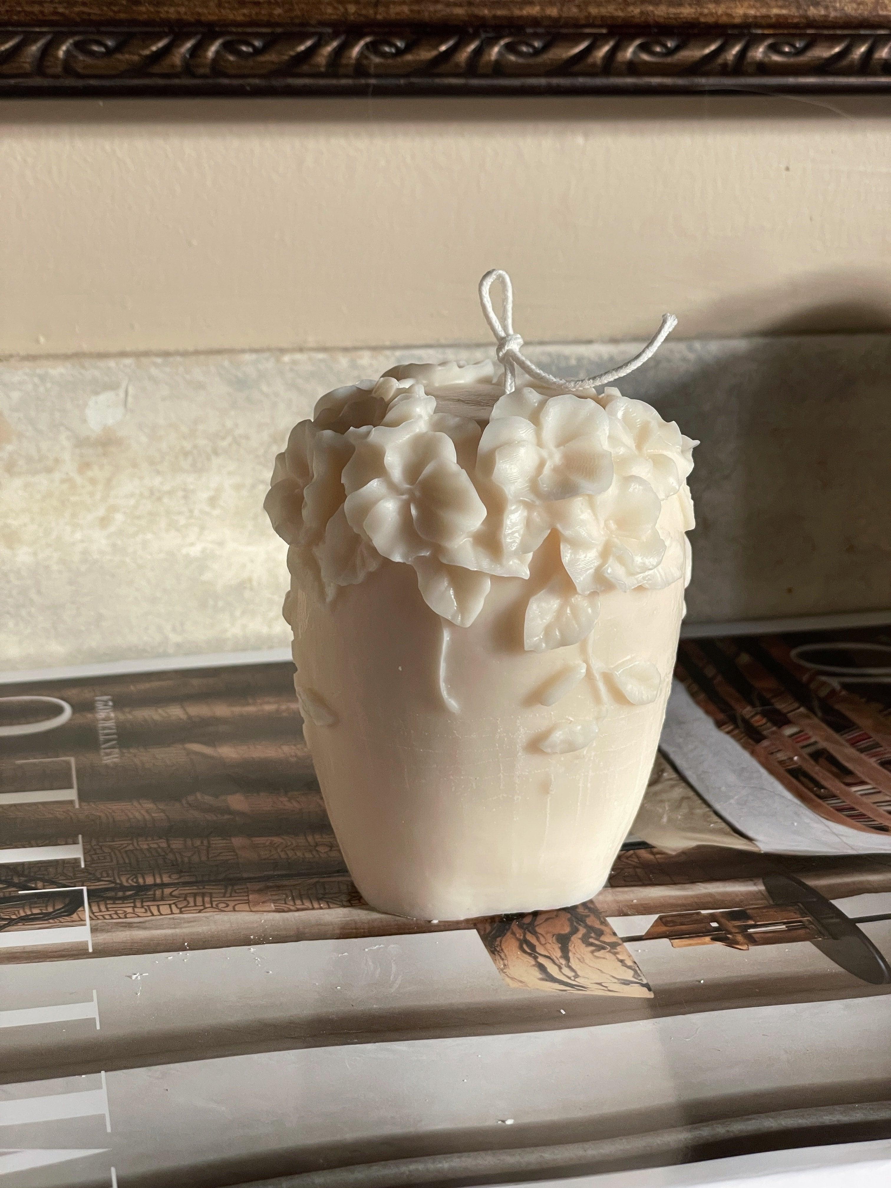 The Floral Pillar is an elegant addition to any home decor. Made from clean burning soy wax, this unscented pillar candle features a beautiful floral decoration that will add a touch of sophistication to any room. Enjoy a long lasting, clean burn with this stylish and environmentally friendly candle.