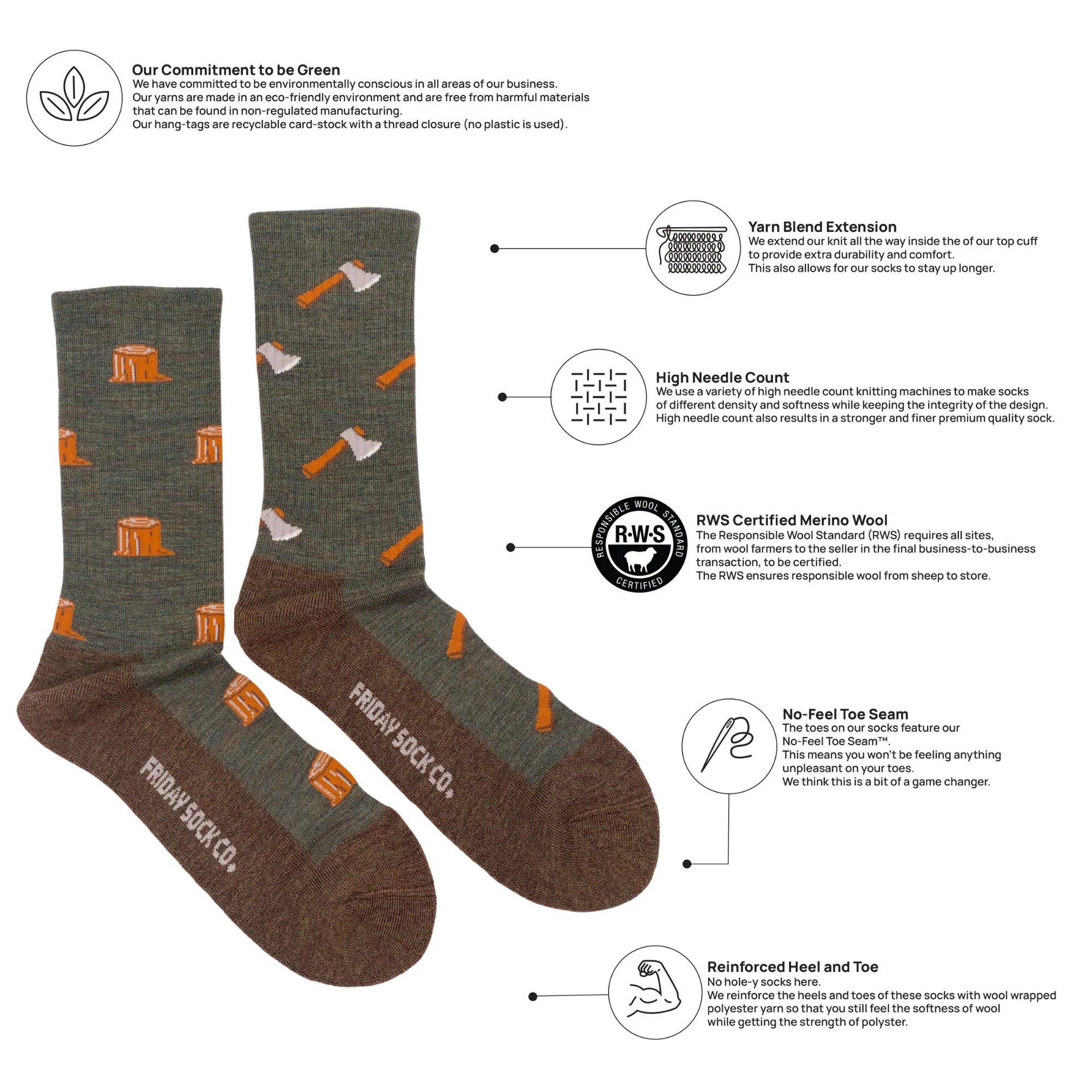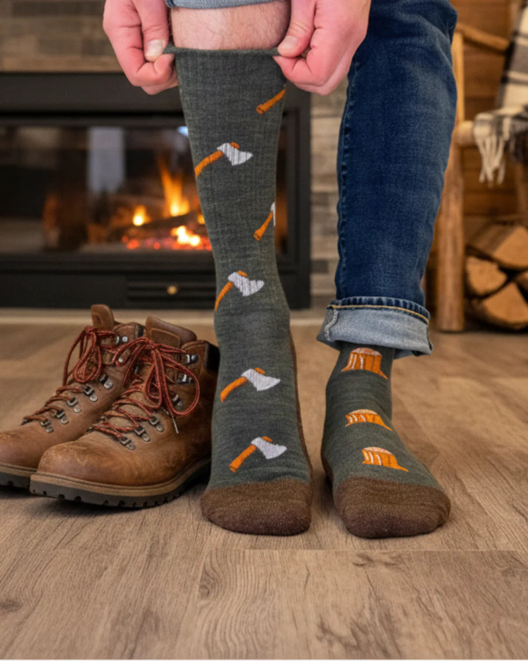 Built for the Bush. The essential sock for the rugged man who loves the forest, combining woodsman style with premium performance. Whether you're splitting logs for the fire, trekking through the pines, or just planning your next weekend getaway, these socks capture the spirit of the woods!