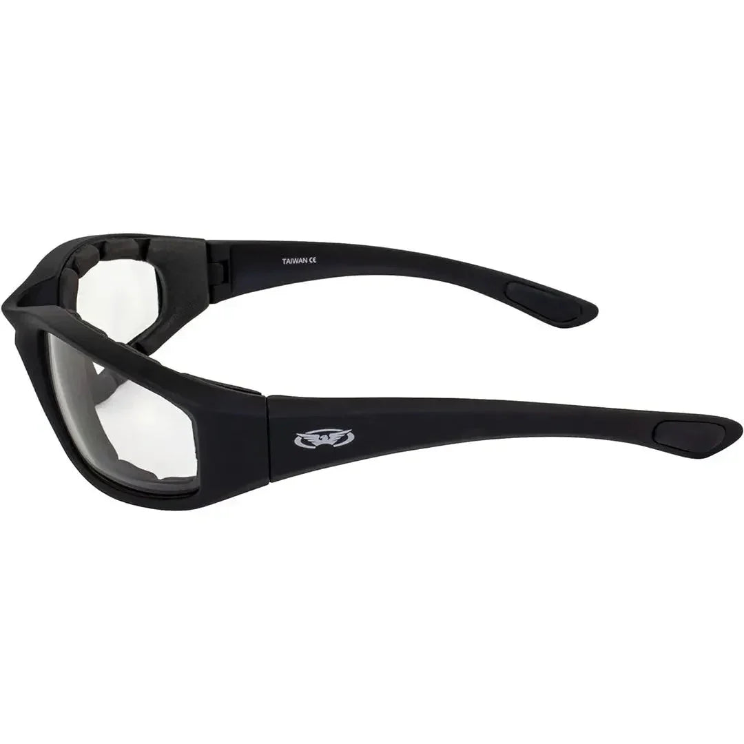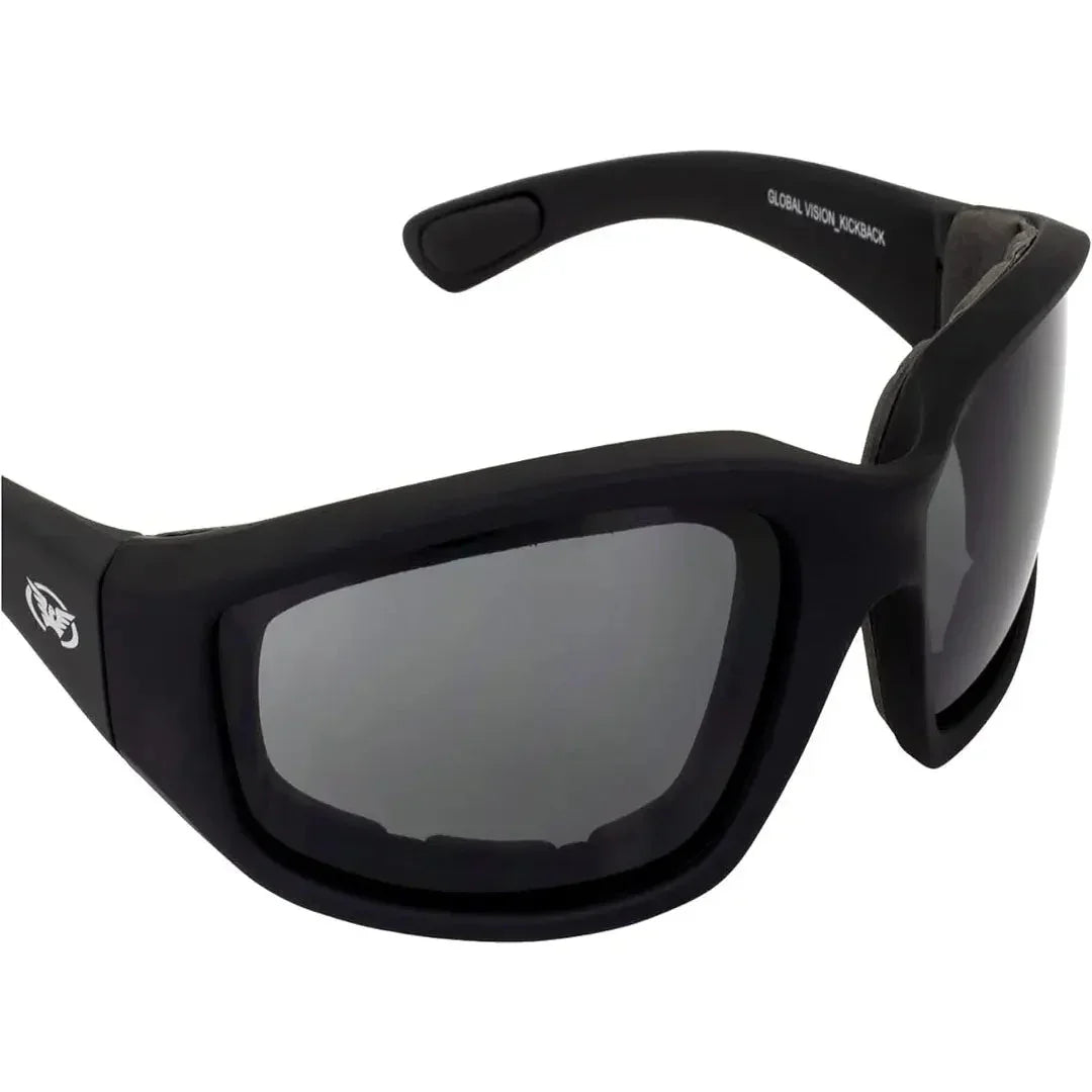 If comfort is important, try on a pair of the Kickback sunglasses rom Global Vision. The black soft touch frame is lined with thick vented EVA foam and equipped with rubber ear pads. The shatterproof polycarbonate lenses provide UV400 protection from the sun and are coated with a scratch resistant finish.
