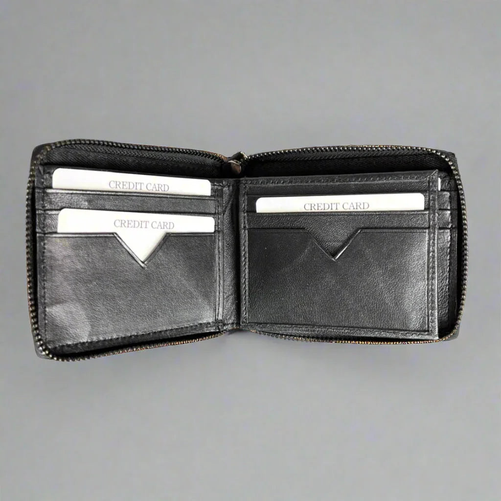 Experience the perfect fusion of security, style, and functionality with the Greenwood Men's Leather Wallet. This premium zip-around wallet combines advanced RFID protection with handcrafted leather excellence, delivering a sophisticated solution for the modern gentleman who values both security and style.