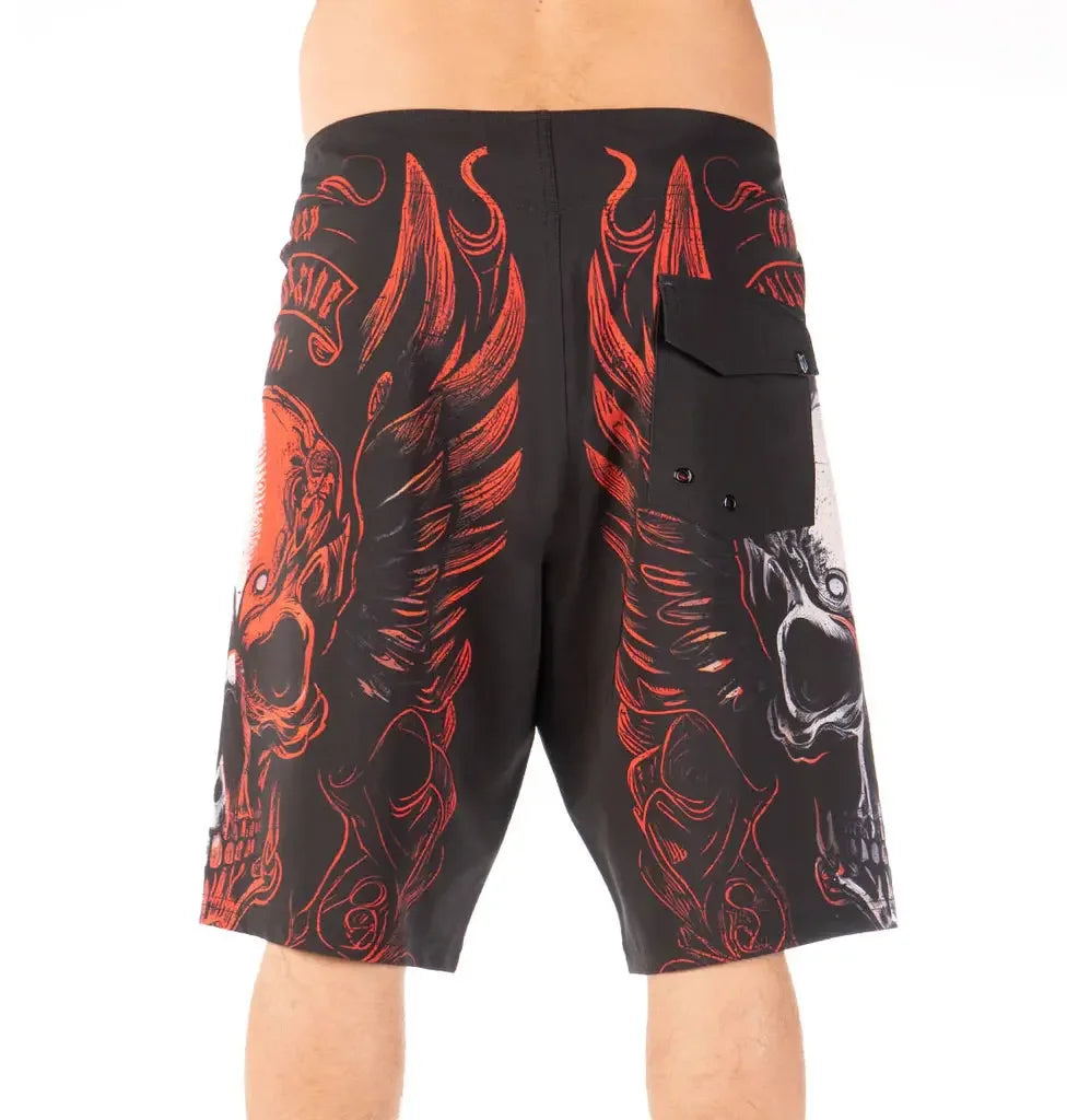 Explore Headrush Men's Hell Wings Board Shorts, combining style and functionality for your beach and swimwear needs. Featuring bold designs and high-quality materials, these board shorts offer comfort and durability for any adventure.