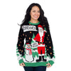 On the surface, this sweater is the perfect depiction of a Christmas night – a black sky lit up with shining stars; trees covered in snow, a snowman with the perfect nose and accessories and a cheery Santa. Turn it around though, and you get a real sense of the mayhem. A disheveled snowman, Santa’s forgotten to pull up his pants all the way and his emotions are well, a bit too unfiltered. If you too struggle to keep your unfiltered thoughts to yourself this season, we suggest wearing this so your clothes can do the talking for you!