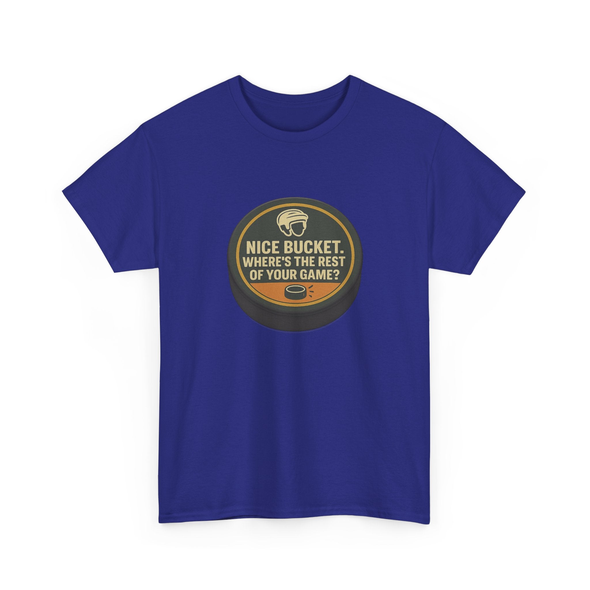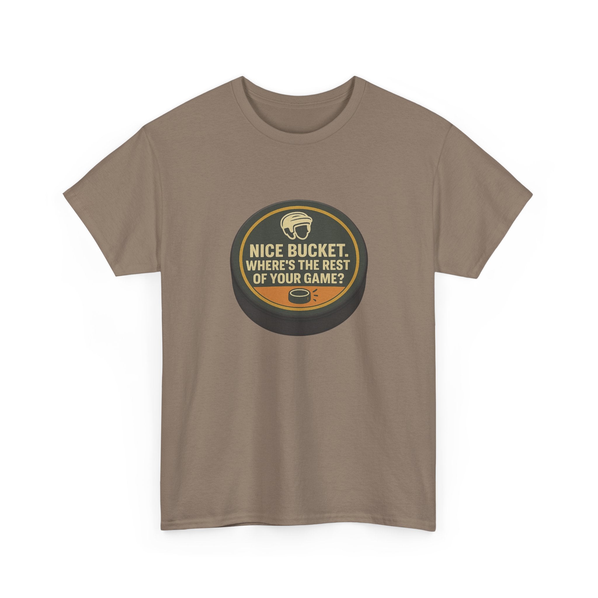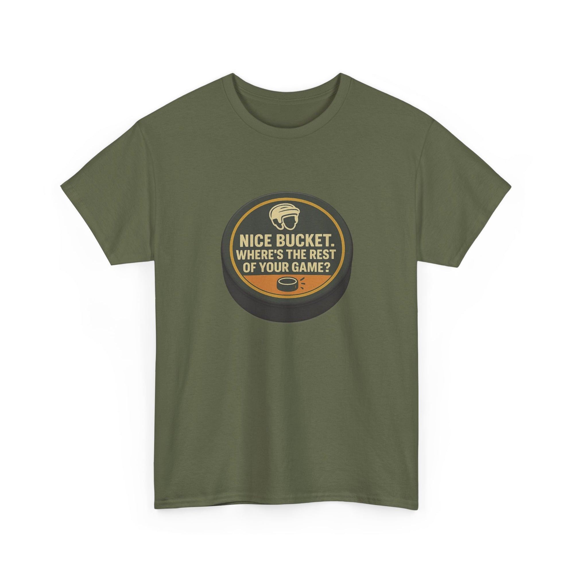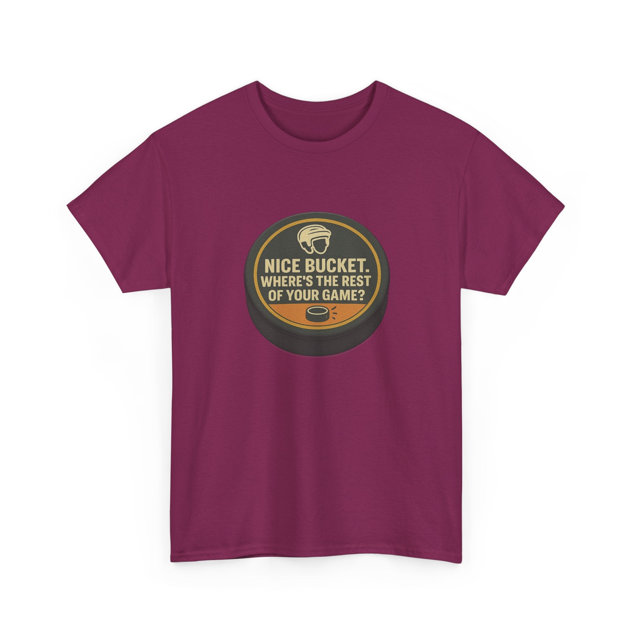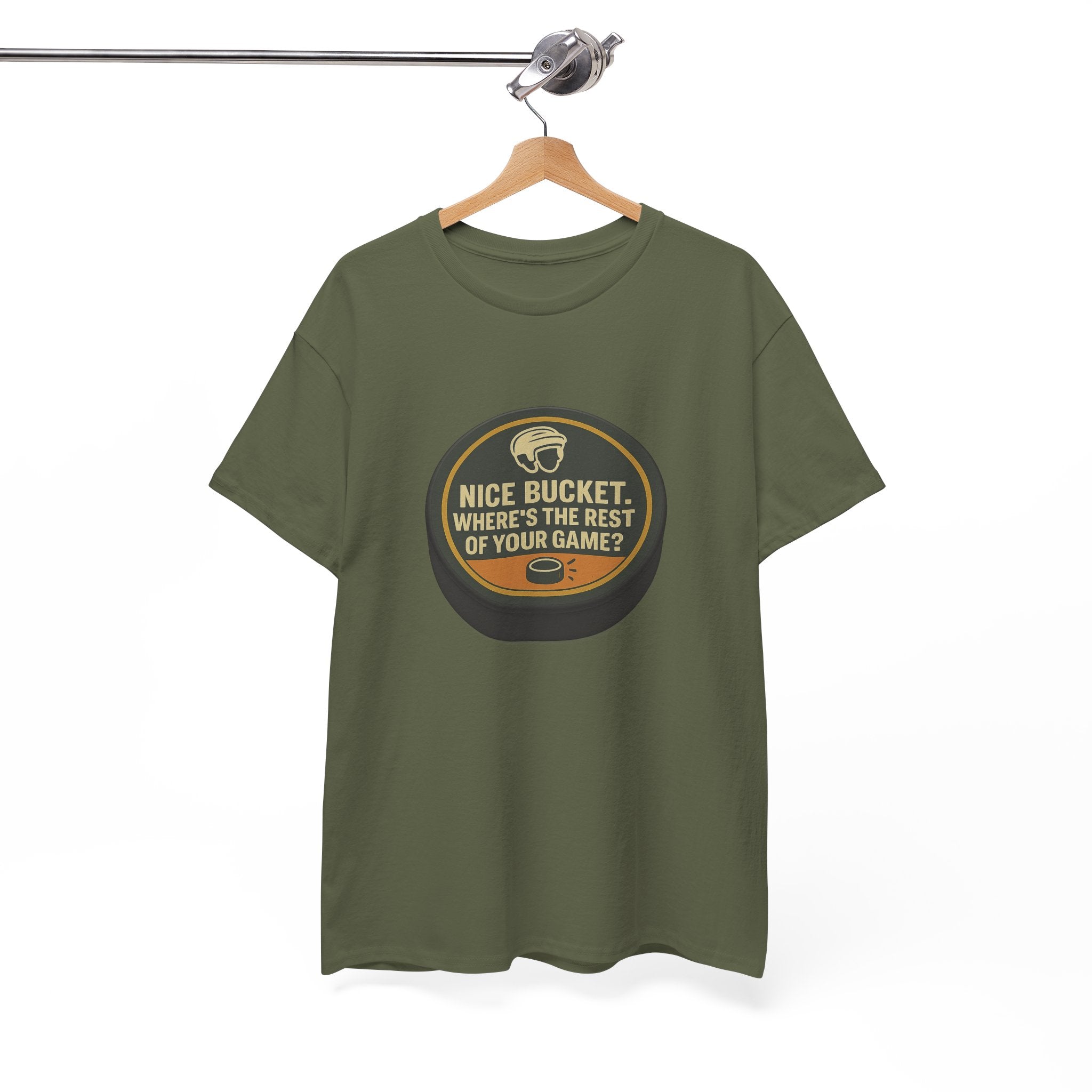 Nice Bucket. Where's The Rest Of Your Game? – for hockey players who appreciate a good roast about their helmet choice and overall performance. This witty design pokes fun at the classic hockey chirp that questions both style and substance on the ice. Whether you're dishing out banter in the locker room or laughing at yourself, this piece captures the irreverent humor that bonds hockey teams. A perfect gift for anyone who can take a joke and dish one right back.