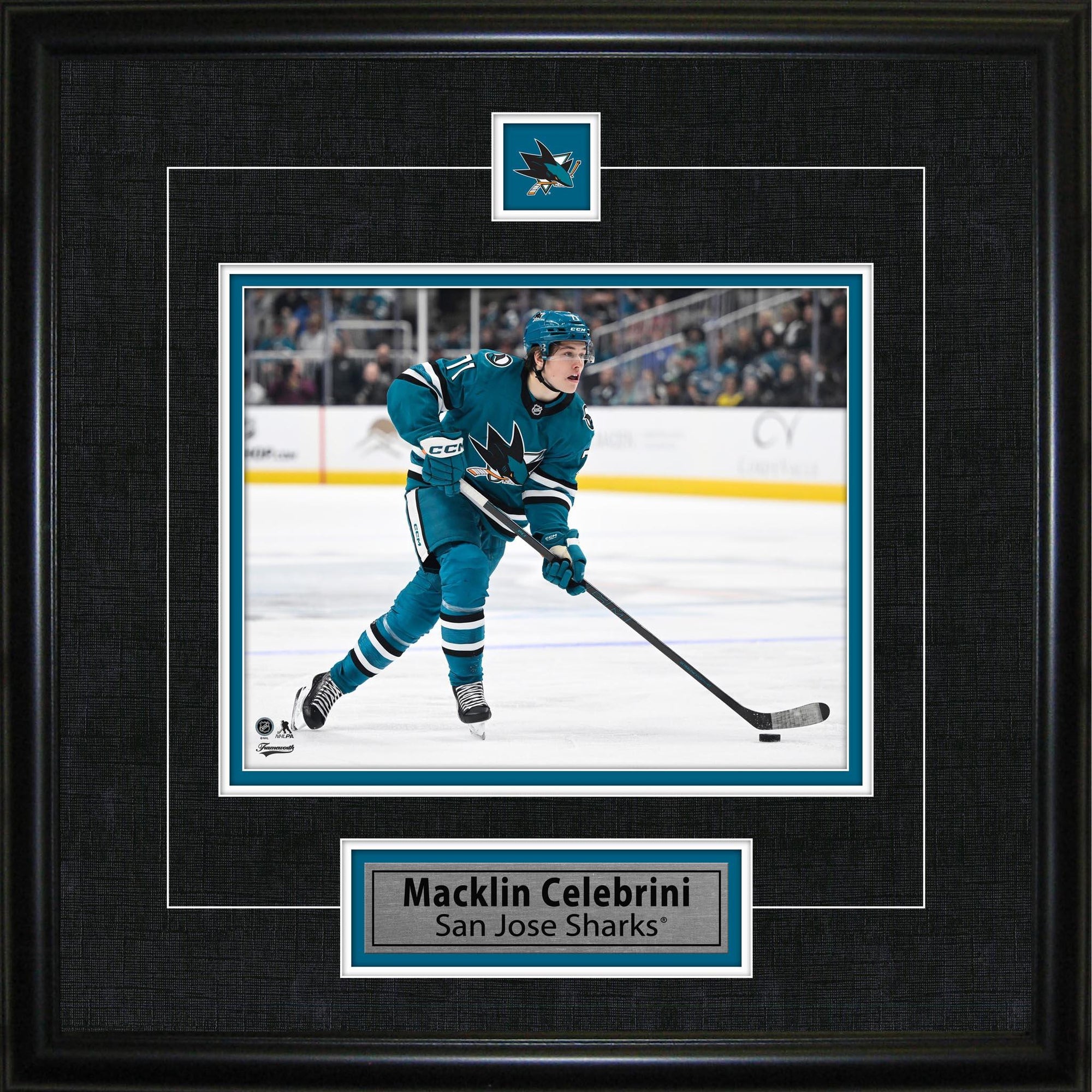 This image of Macklin Celebrini is printed on high quality photo paper and then professionally framed. This print is officially licensed by the National Hockey League (NHL) and National Hockey League Players Association (NHLPA). Made in Canada.. Finished Size: 18 x 18"
