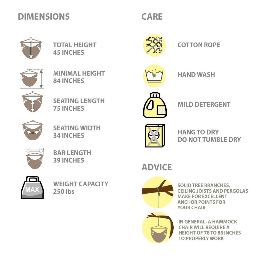 | Materials | Cotton Hammock Chair with Wood Spreader |