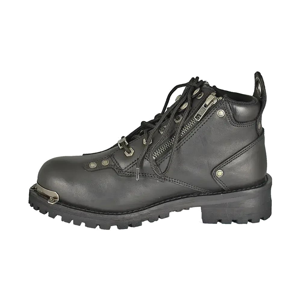 Milwaukee Leather Women's 6" Double Zip Motorcycle Boots provide first-class protection and style. Constructed with full-grain, 2.2mm cowhide leather for superior water-resistance, these boots also feature an oil & acid-resistant outsole with a non-skid and non-marking tread. Lace-to-toe design and Milwaukee signature hardware provide an easy entry, while Smart Mask Climate Control insoles, moisture-wicking linings, and metal toe pieces and rivets ensure maximum comfort and durability.
