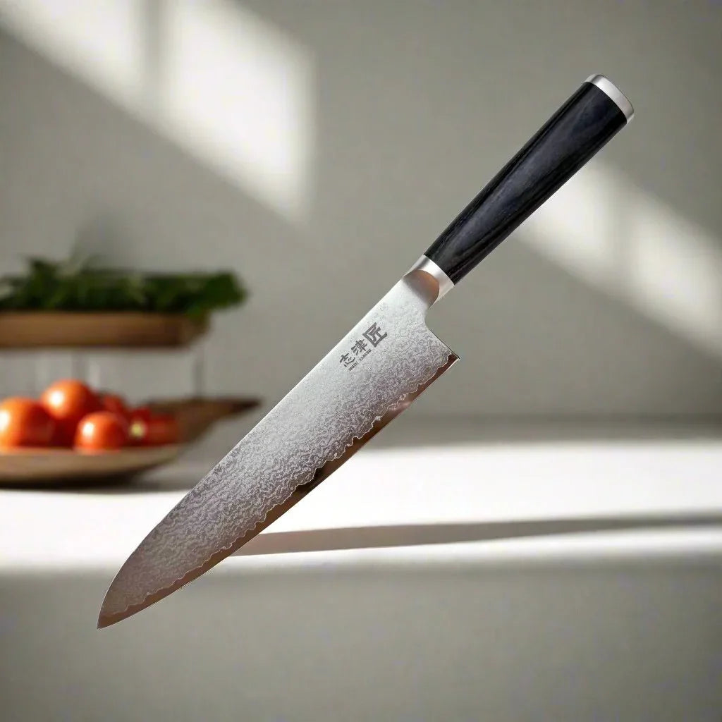 The Miyako SUS 210mm Gyuto Knife embodies the perfect blend of traditional Japanese artistry and innovative materials. Designed to reflect the elegance of Damascus steel, this knife pays homage to its historical roots while using advanced blacksmithing techniques to achieve exceptional sharpness and durability.