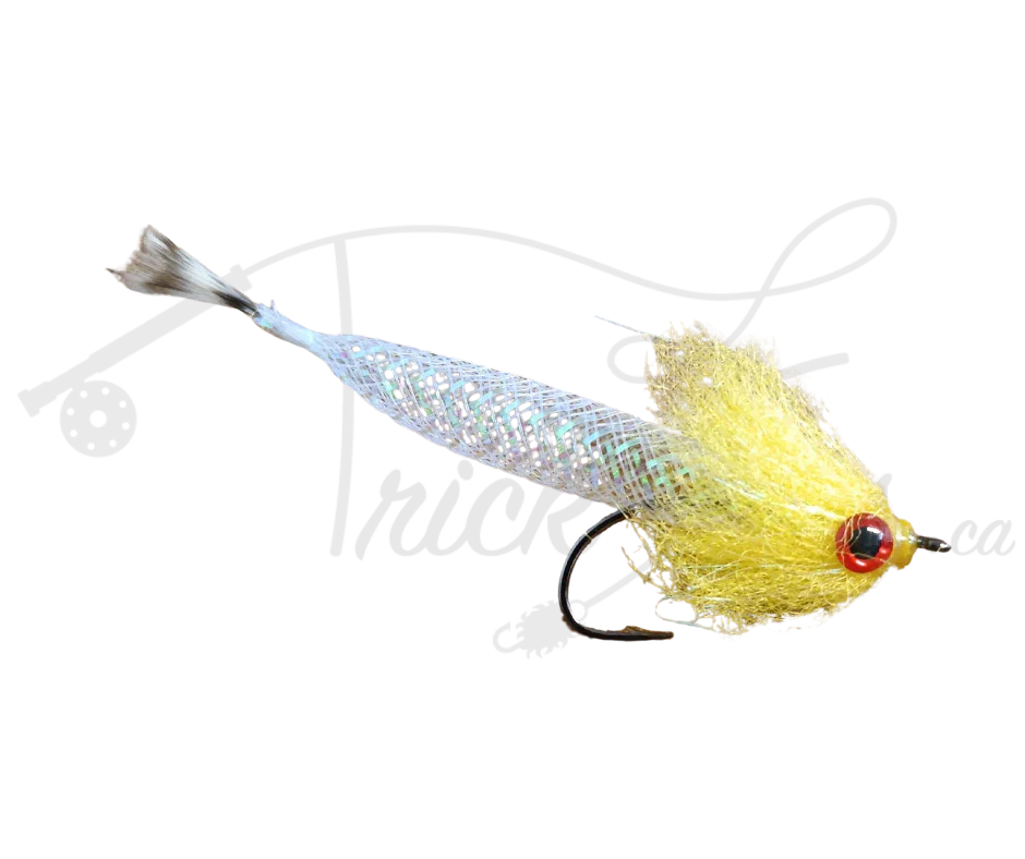 Much like our Mylar Minnows this version looses the heavier epoxy head and adds some hair instead. This keeps the Mylar Hair Minnow Yellow higher in the water column.