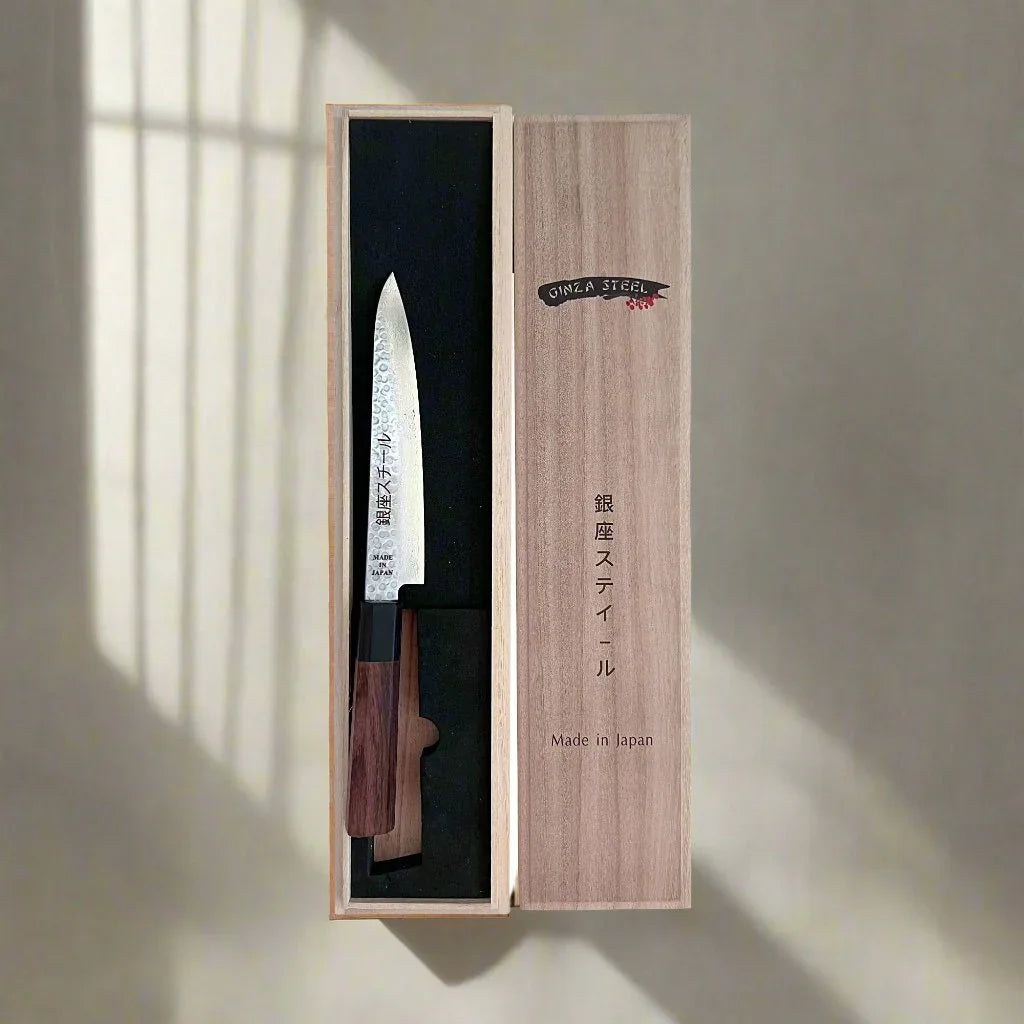 It is most suited for cutting small ingredients, such as lemon, apples, and potatoes. The origin of its name comes from the French, Petit = small. With larger knives, it is bothersome to prepare side vegetables such as carrots for steak dishes with decorative carvings but it can be done easily with petty knives. It still won’t have any trouble cutting retail size meats and unless it is truly oversized, a petty knife is capable of filleting a fish without any issues. Also, the length of the blade is only 15 centimeters so sharpening it is very easy as well as performing maintenance work compared to other types of knives. For this reason, we recommend it for the first knife to purchase for men or women alike. A petty knife is great for daily use