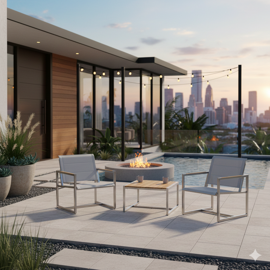 Pine Stainless Steel & Teak Outdoor Sling 2 Chairs Bistro Set