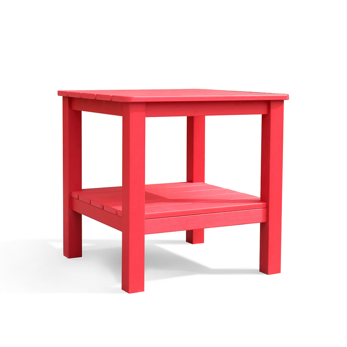 Designed to coordinate perfectly with our Adirondack and Hazelnut pieces, our polymer end table is a thoughtfully made must-have to round out any outdoor living space. It's all in the details: made from recycled plastics, this sturdy end table features wood grain finish and a built-in shelf for some extra storage. Pair with a set of our outdoor chairs for a picturesque poolside lounge.