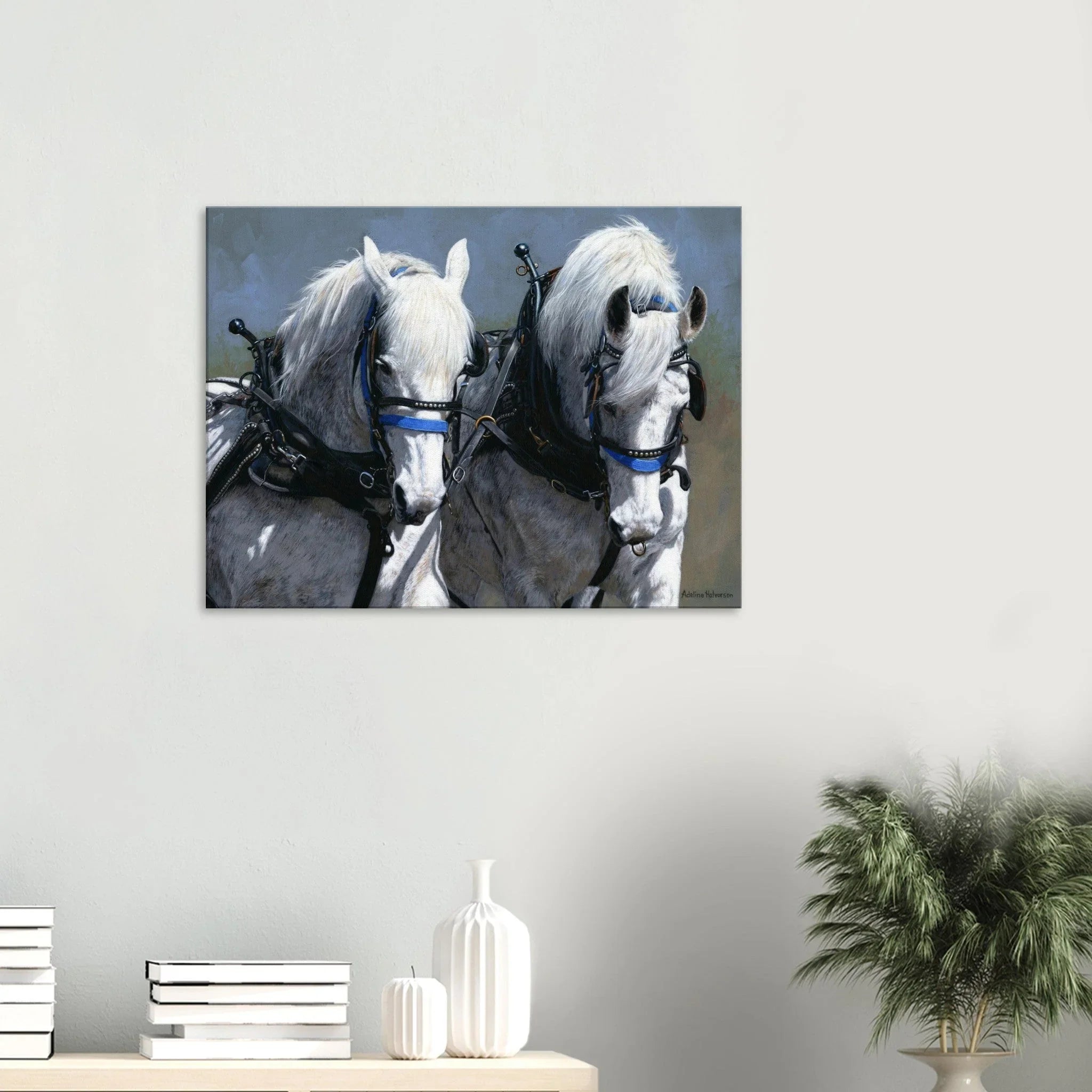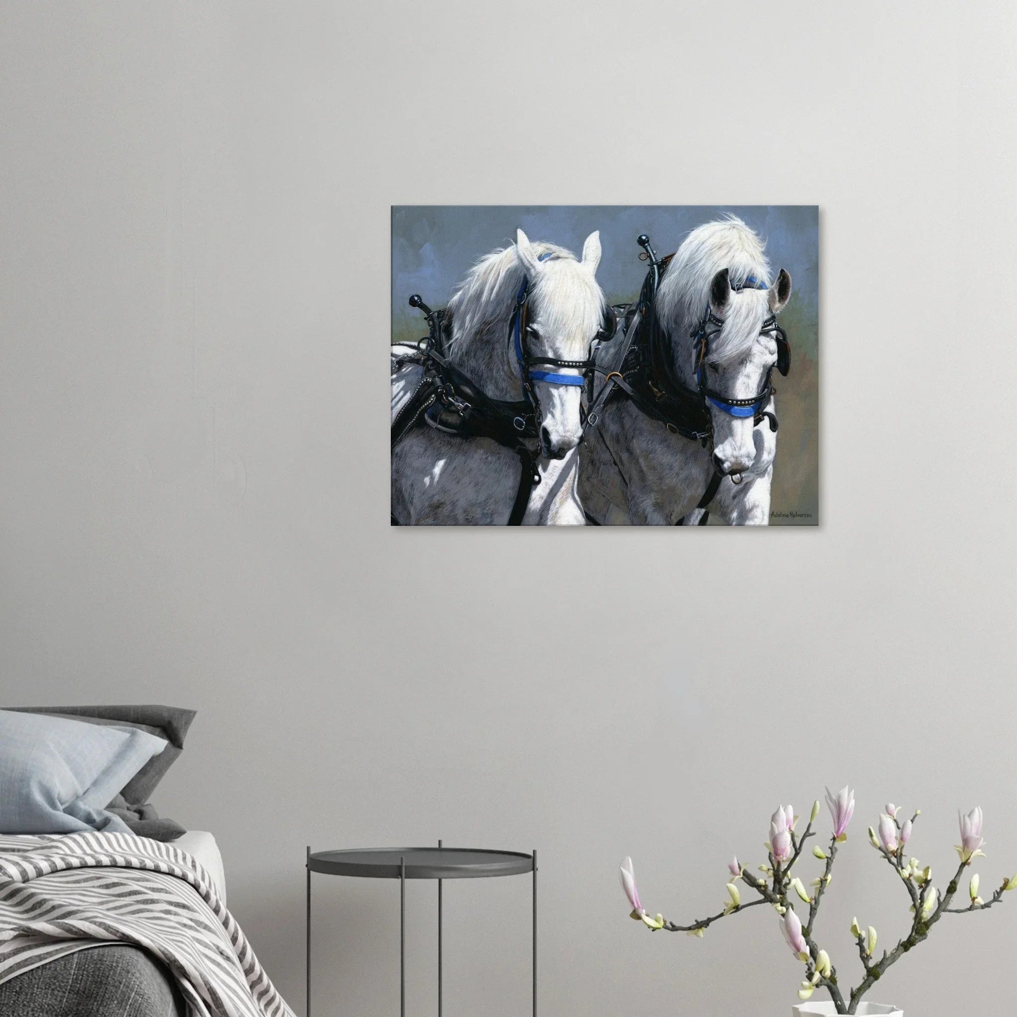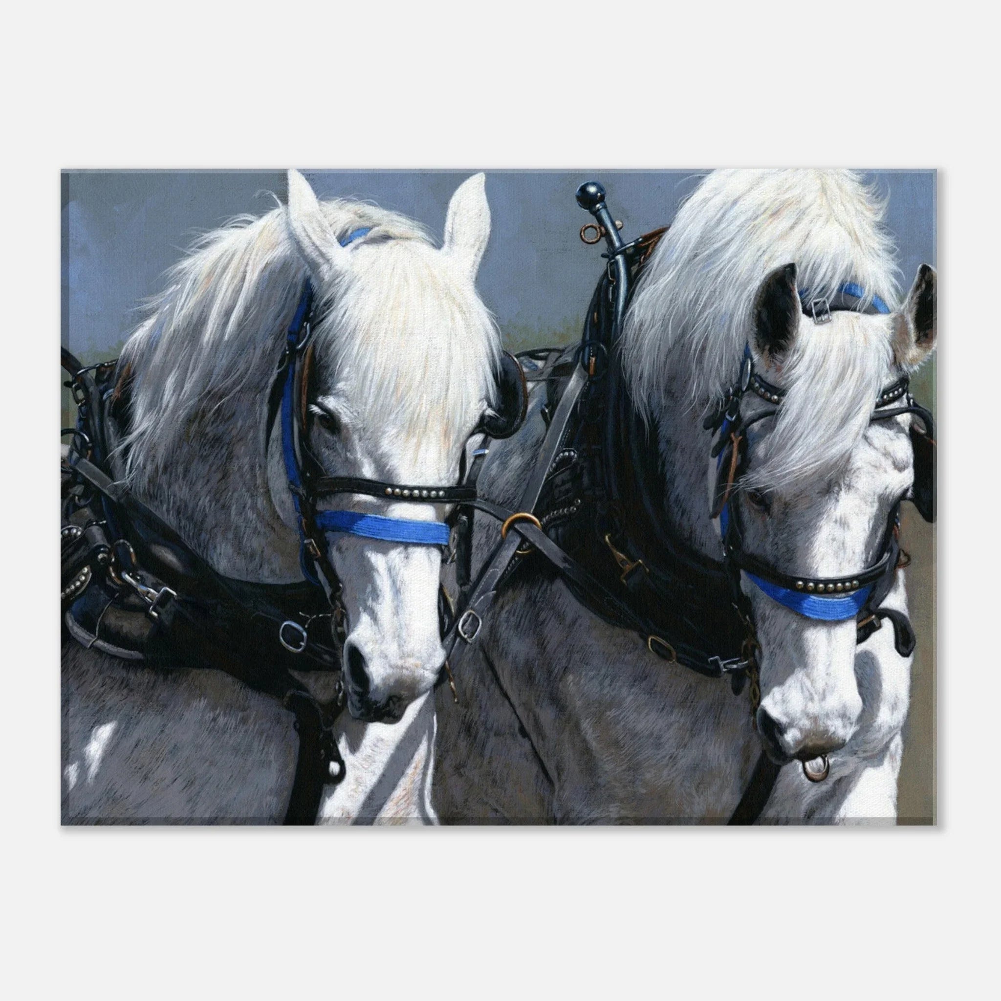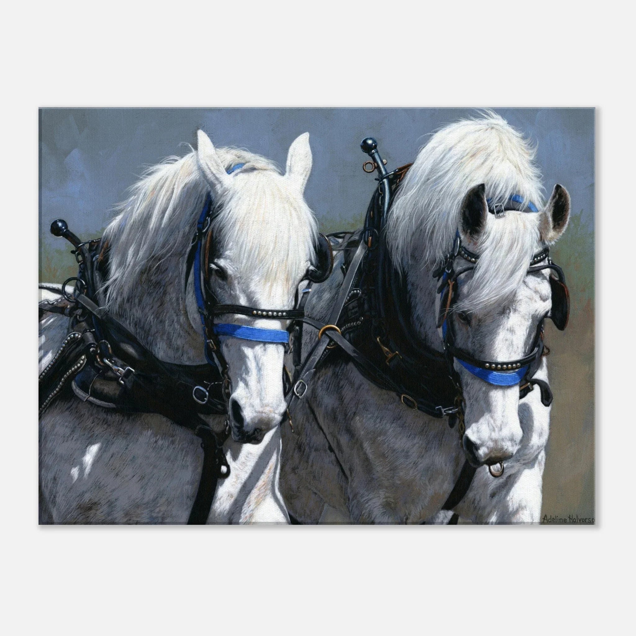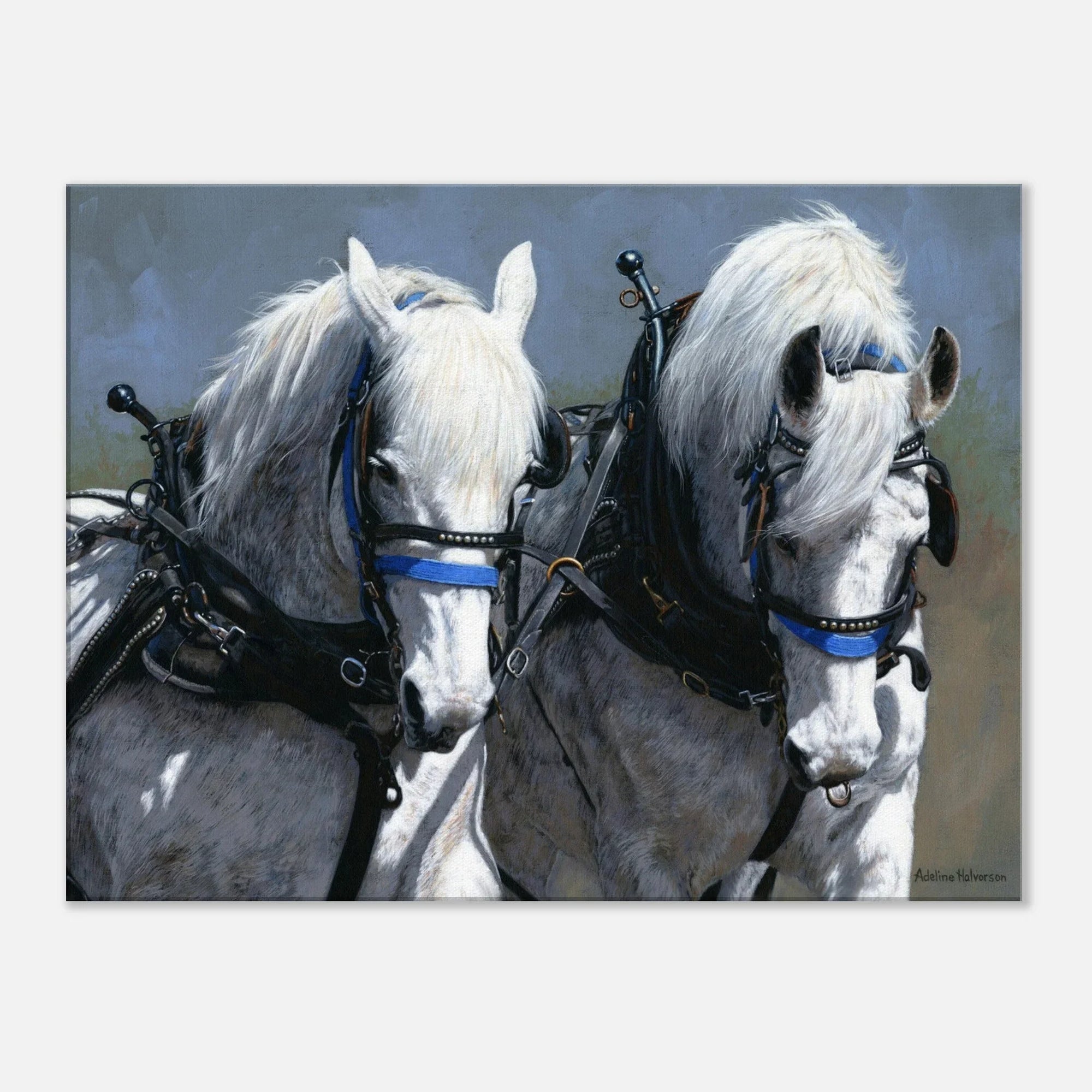 Celebrate the captivating allure of strength and elegance with our Power and Grace Canvas Print, featuring a stunning team of draft horses harnessed and pulling in perfect harmony.