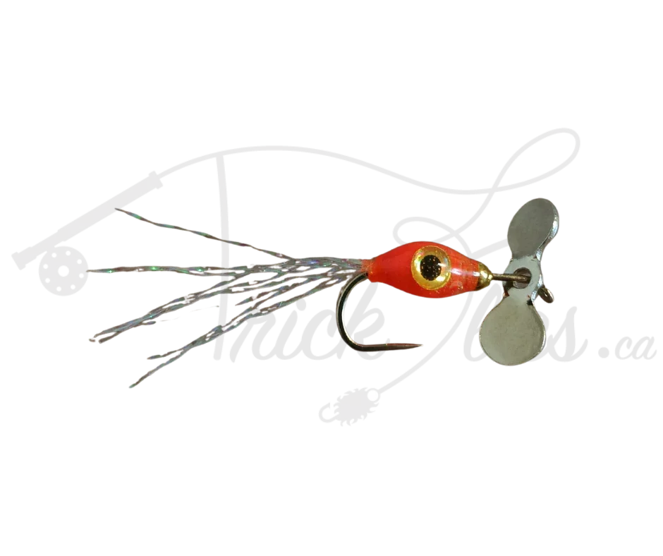 At Trickflies.ca we are always trying to innovate to produce the next great fly and our Propeller Streamer Orange is the result of all our hard efforts. Unique to Trickflies.ca this fly has gone through rigorous testing and design changes. Try one, you wont regret it.