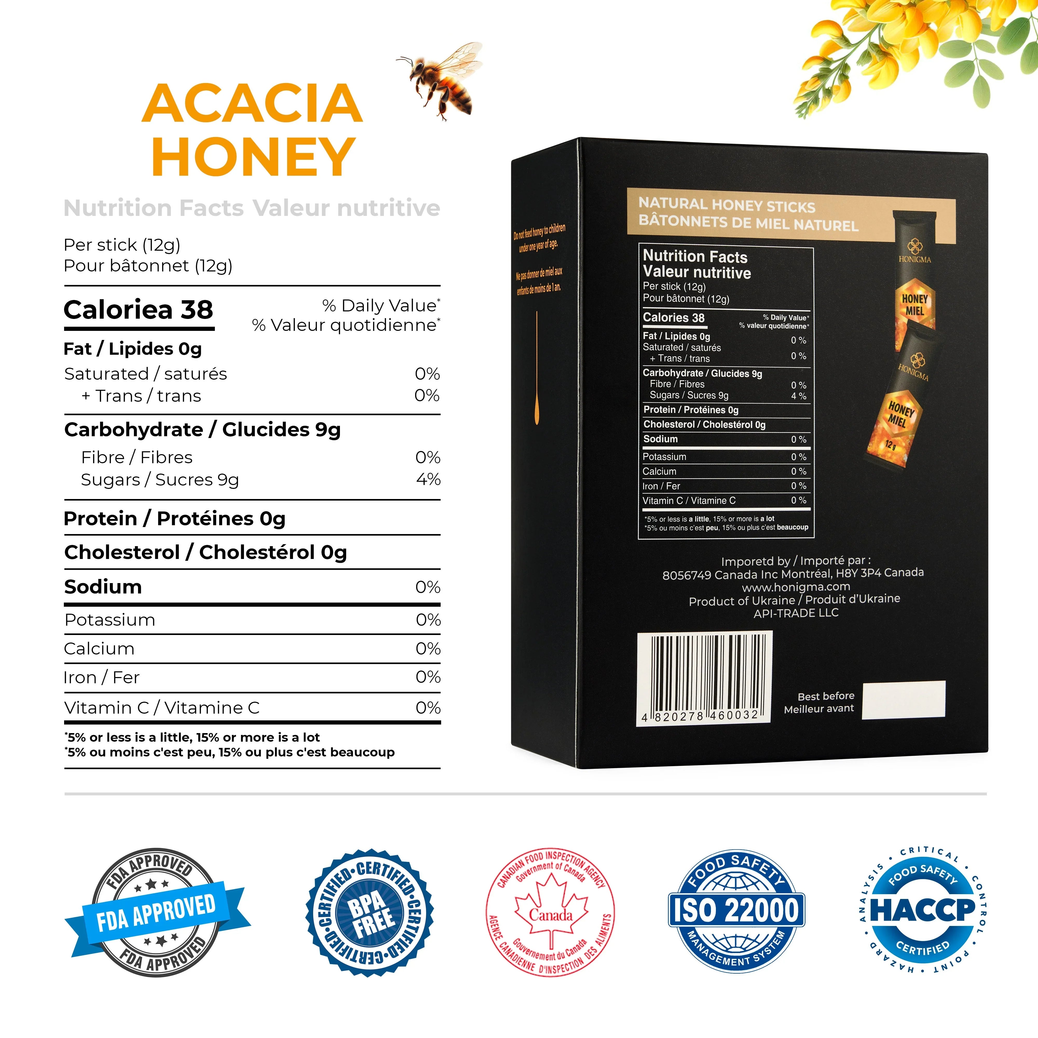 Discover the delightful goodness of our Pure Ukrainian Acacia Honey Sticks, an easy and nutritious addition to your daily routine. Sustainably sourced, each stick is filled with light, liquid honey that flows effortlessly and tantalizes your taste buds with its smooth, sweet flavor. These honey sticks are not only a delicious treat but also come packed with a myriad of health benefits.