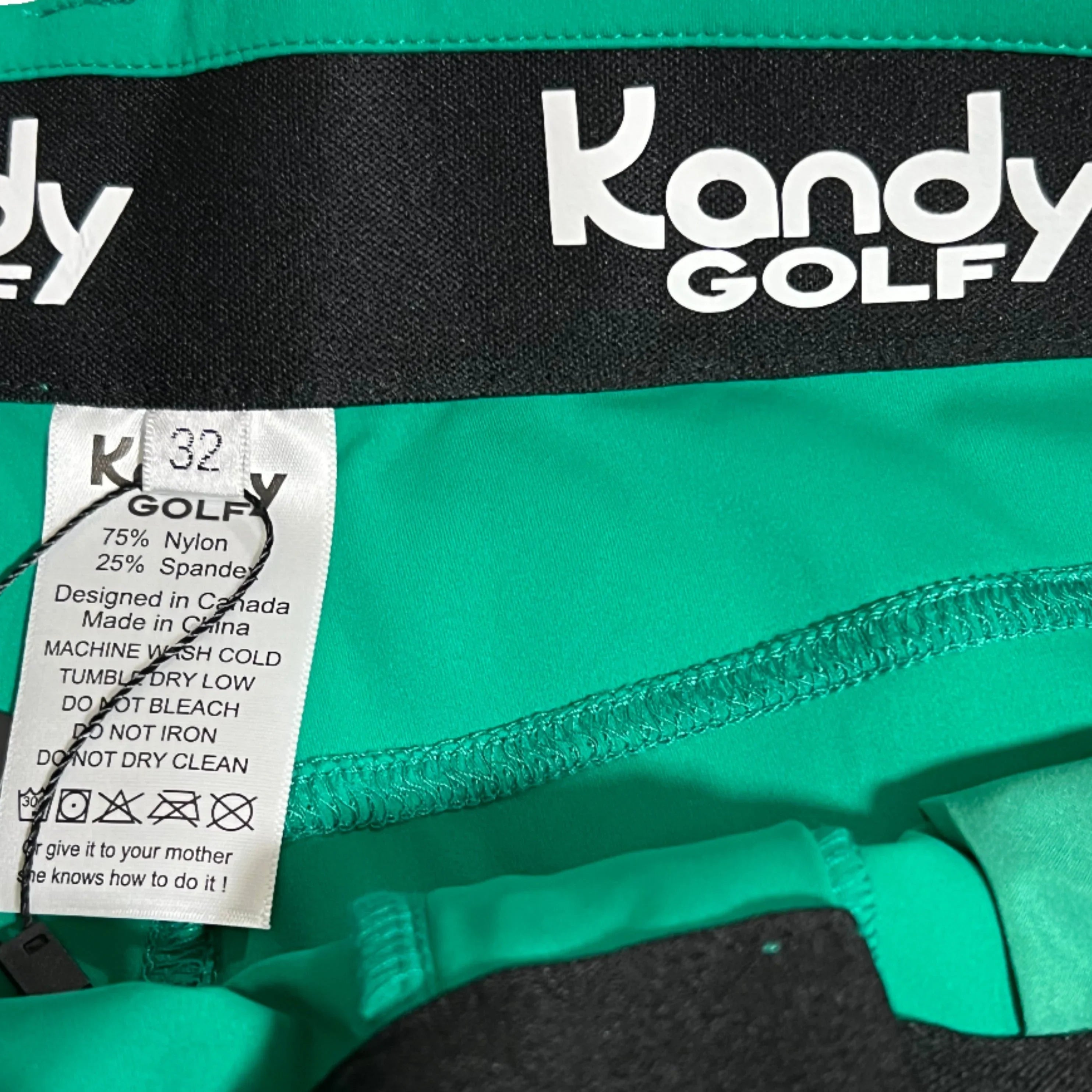 For caring for your new Kandy Golf pants, wash them in cold water with like colors for optimal results. In case of stains on white shorts or pants, pre-treat them before drying, as heat can set the stain, making it challenging to remove. Once you know the stain is out, dry as you would normally on the active wear setting on your dryer.