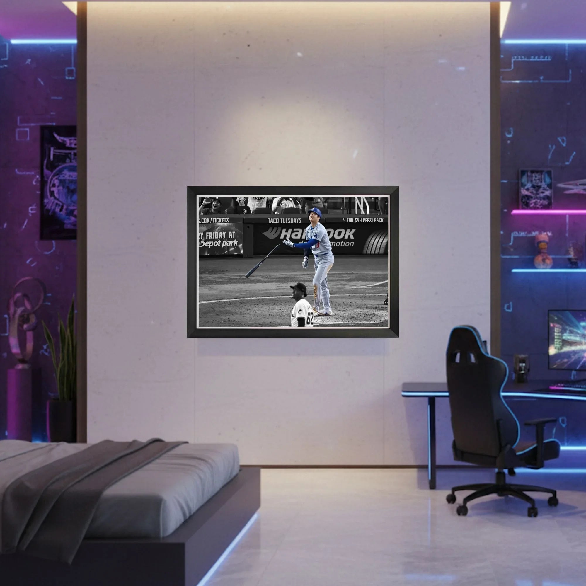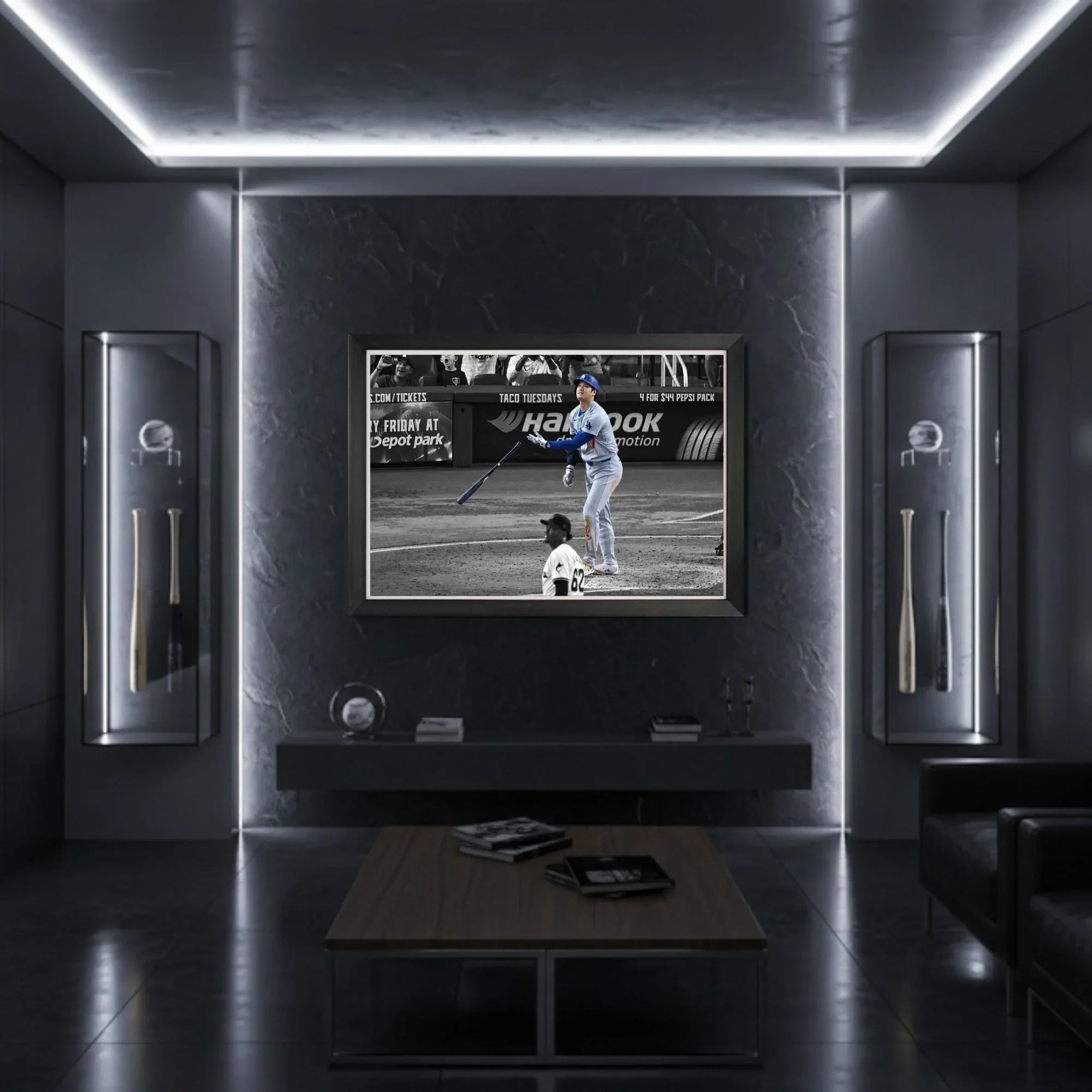 Celebrate one of baseball’s most historic achievements with this beautifully framed canvas featuring Shohei Ohtani’s record-setting 50th home run. Showcasing the moment that solidified Ohtani’s place as a modern baseball icon, this framed piece measures 33.5 x 23.5 inches, making it a standout addition to any sports collection. Perfect for collectors and fans alike, this artwork captures the power and legacy of one of the game’s greatest.