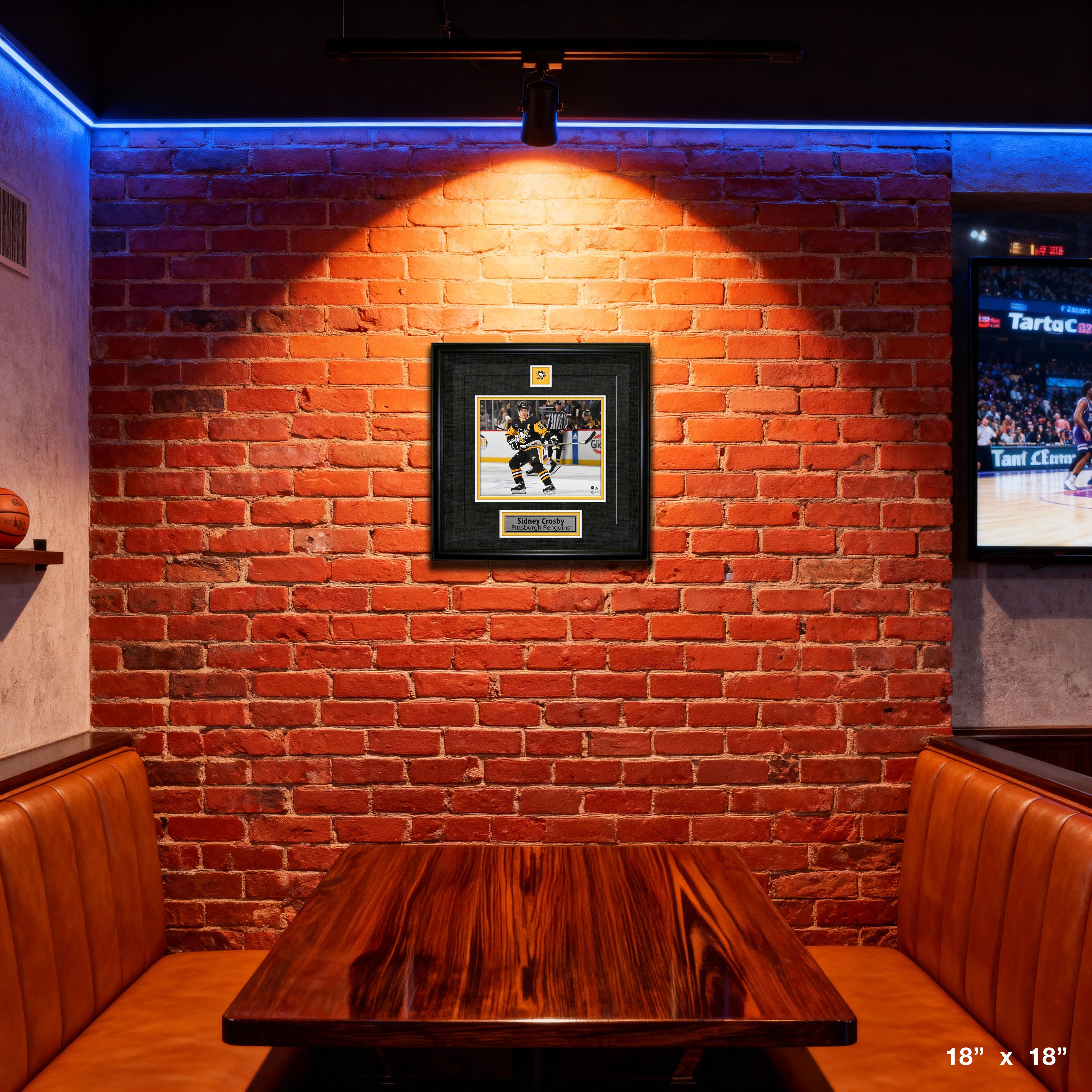 This image of Sidney Crosby is printed on high quality photo paper and then professionally framed. This print is officially licensed by the National Hockey League (NHL) and National Hockey League Players Association (NHLPA). Made in Canada.. Finished Size: 18 x 18"