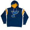 Grab this athletic throwback retro style hoodie to show off your support for the St. Louis Blues! The mid-weight fabric and inside brushed fleece give some nice warmth. The team logo is screen printed front and center so everyone will know who you’re cheering for. This striking top features team colored shoulder stripes and bold secondary accents. Take an athletic approach to cheering on your favorite team with this eye-catching hoodie!