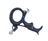 The STAN LYNX is available in Black and Heavy Metal, Small through X-Large. In the package, you will find short and long thumb extensions, small and large thumb barrels, 3 and 4-finger pieces, an adjustable thumb post mount with an interchangeable handle filler, and 2 interchangeable double-sided moons.