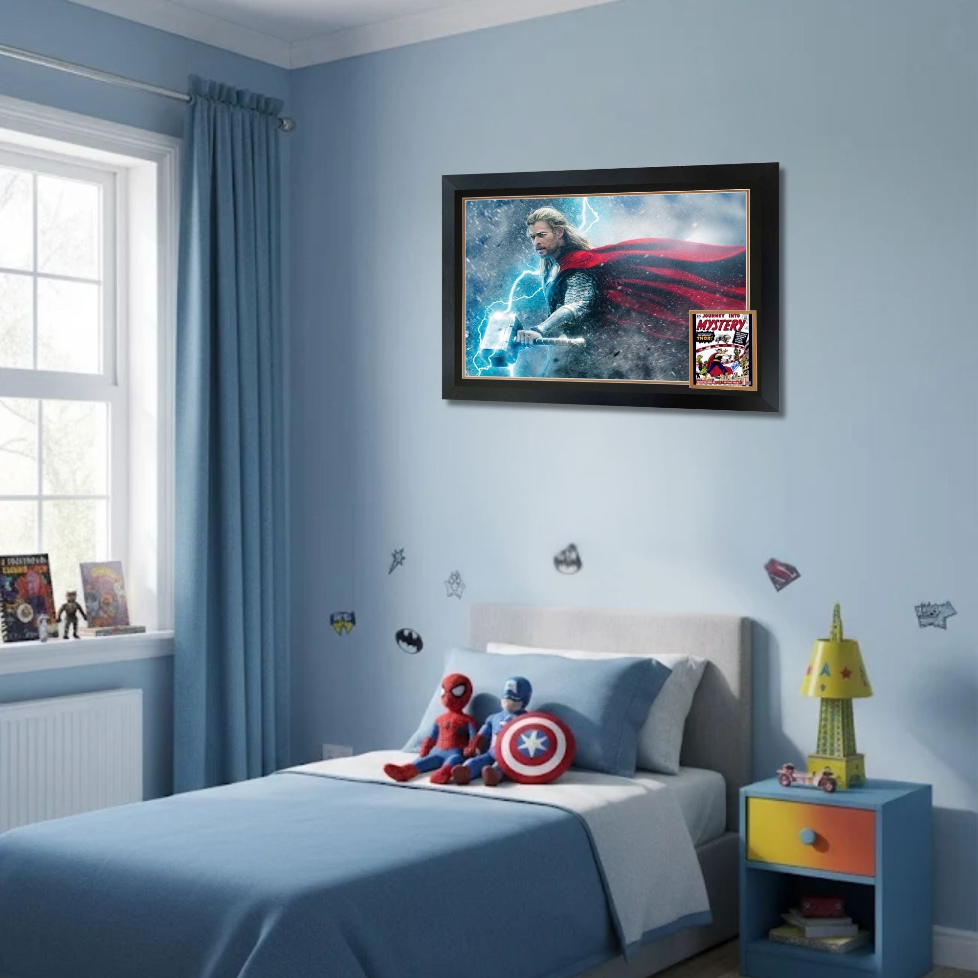 Honor the God of Thunder with this breathtaking framed collectible featuring Journey Into Mystery #83, the first appearance of Thor. Signed by Marvel visionary Stan Lee, this piece is an essential for fans.