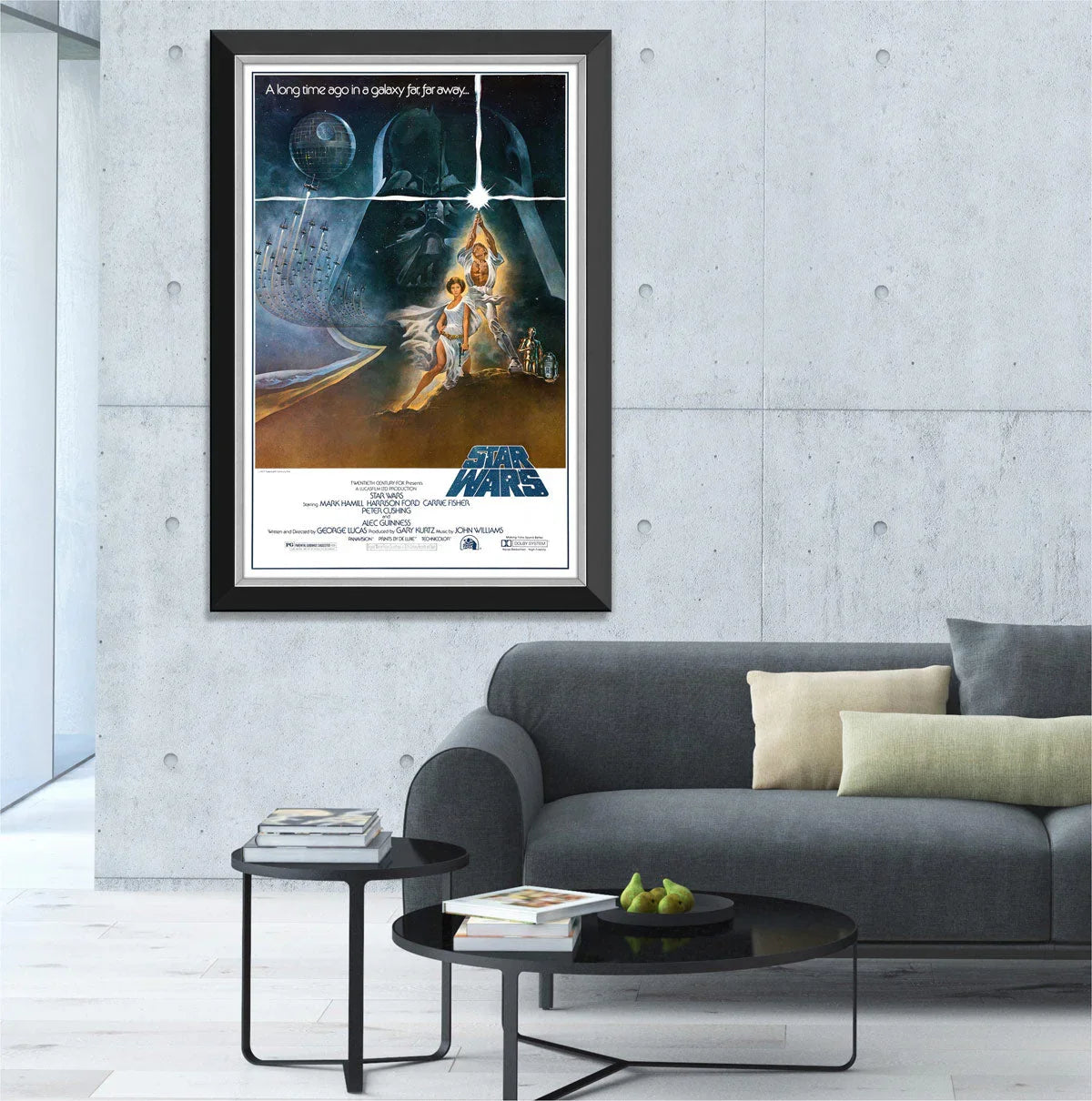 This is a framed textured canvas print of the Star Wars Episode IV A New Hope Movie Poster. A must have for Star Wars Fans and cinematic collectors. Comes museum framed and measures 33.5 x 23.5 inches.