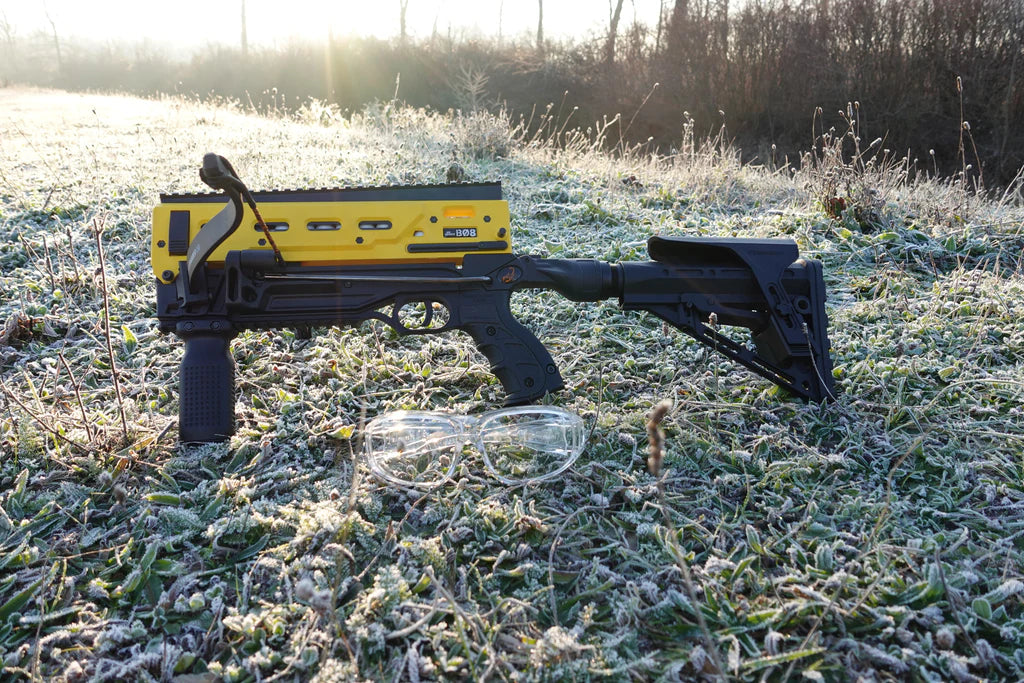 Equipped with our Tactical Lower, the B08 transforms into a powerful and fun .68 caliber launcher. Its modular design allows you to swap limbs quickly and easily, giving you even more customization and adaptability for any scenario.