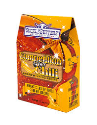 SuckleBusters' Competition Style 2 Dump Chili Kit (2.7 oz) makes 2 lbs of award-winning Texas Red Chili. The secret is in the special blend of spices and chile powders, plus the 2-step recipe provided. Bring home the championship flavor or impress at your next cook off. Mild heat.