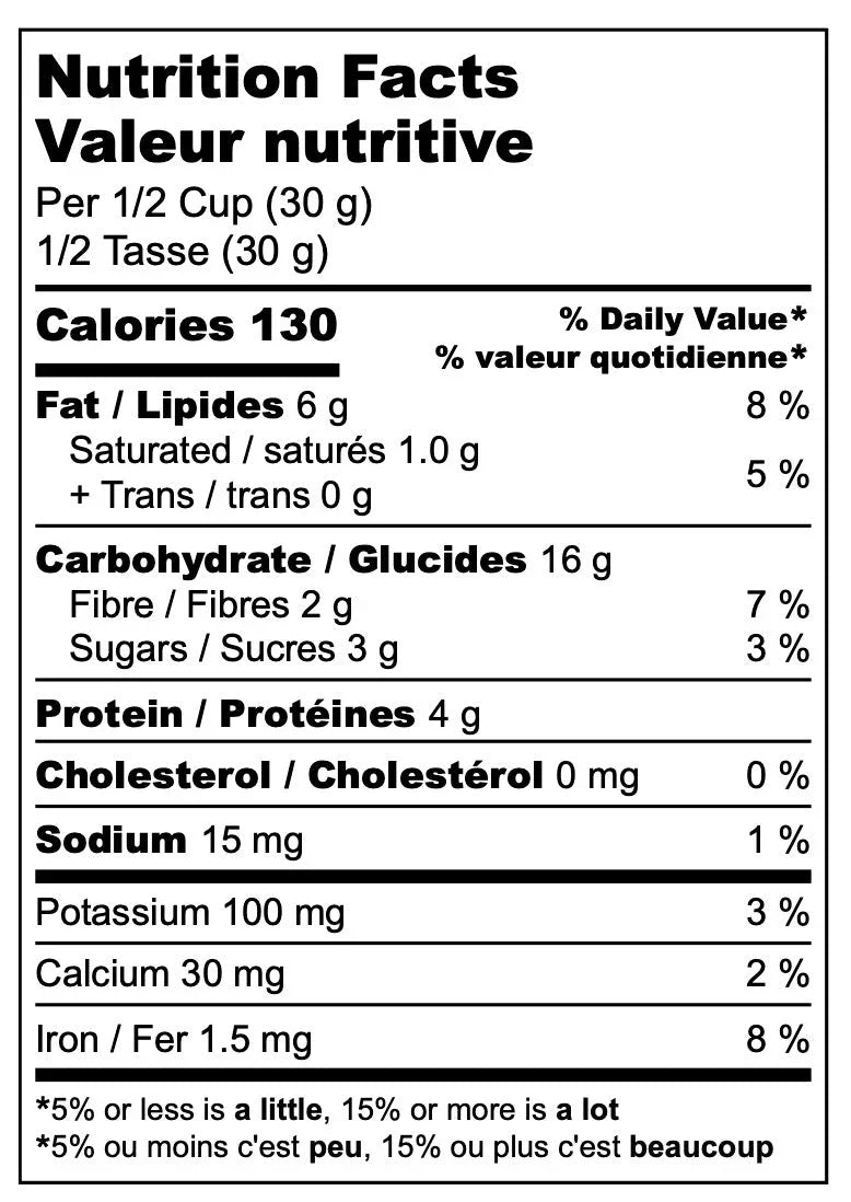CLEAN LABEL CREDITS: No Artificial Flavours/Sweeteners or Colours, Gluten Free, Dairy Free, Low Sugar, Vegan, Made with Avocado Oil