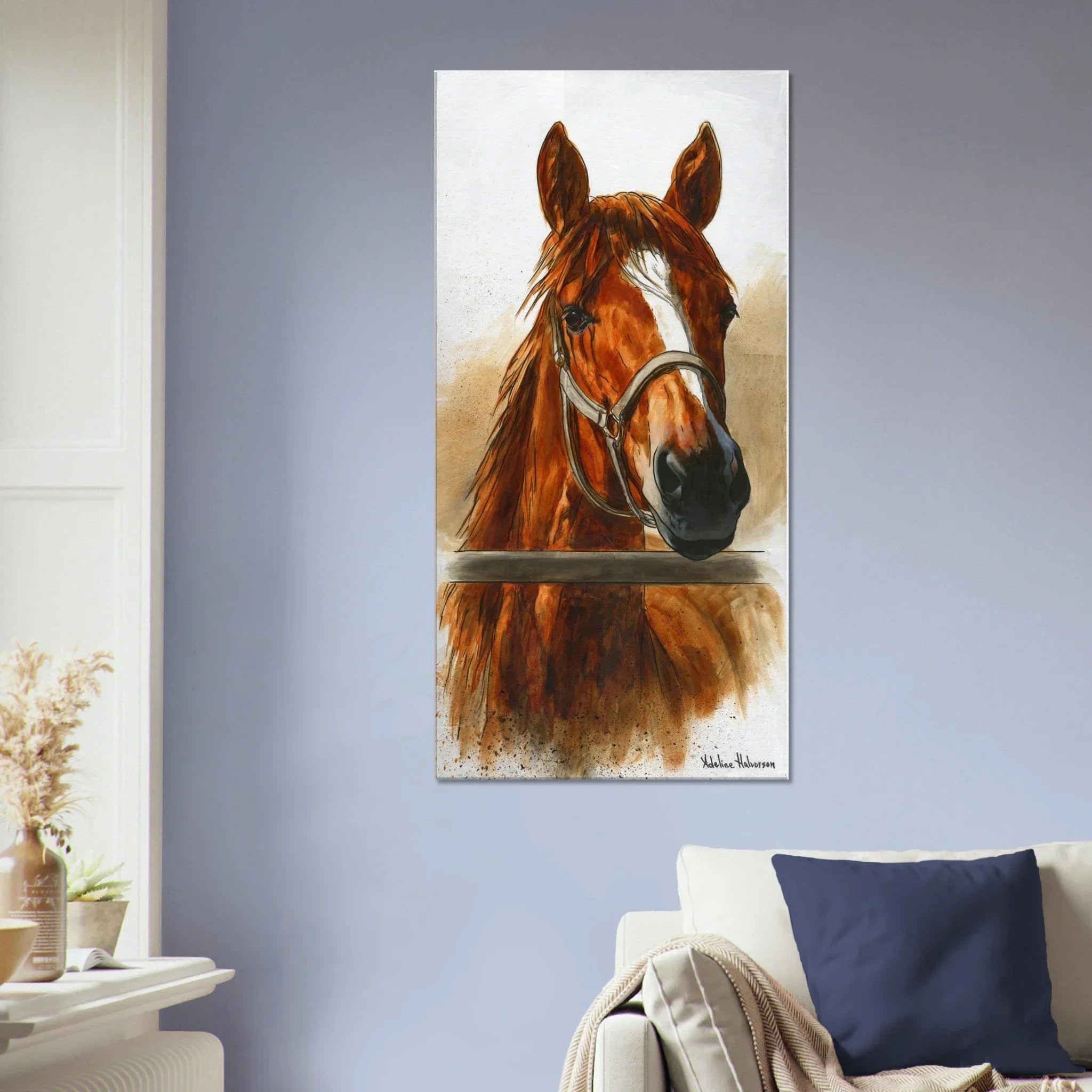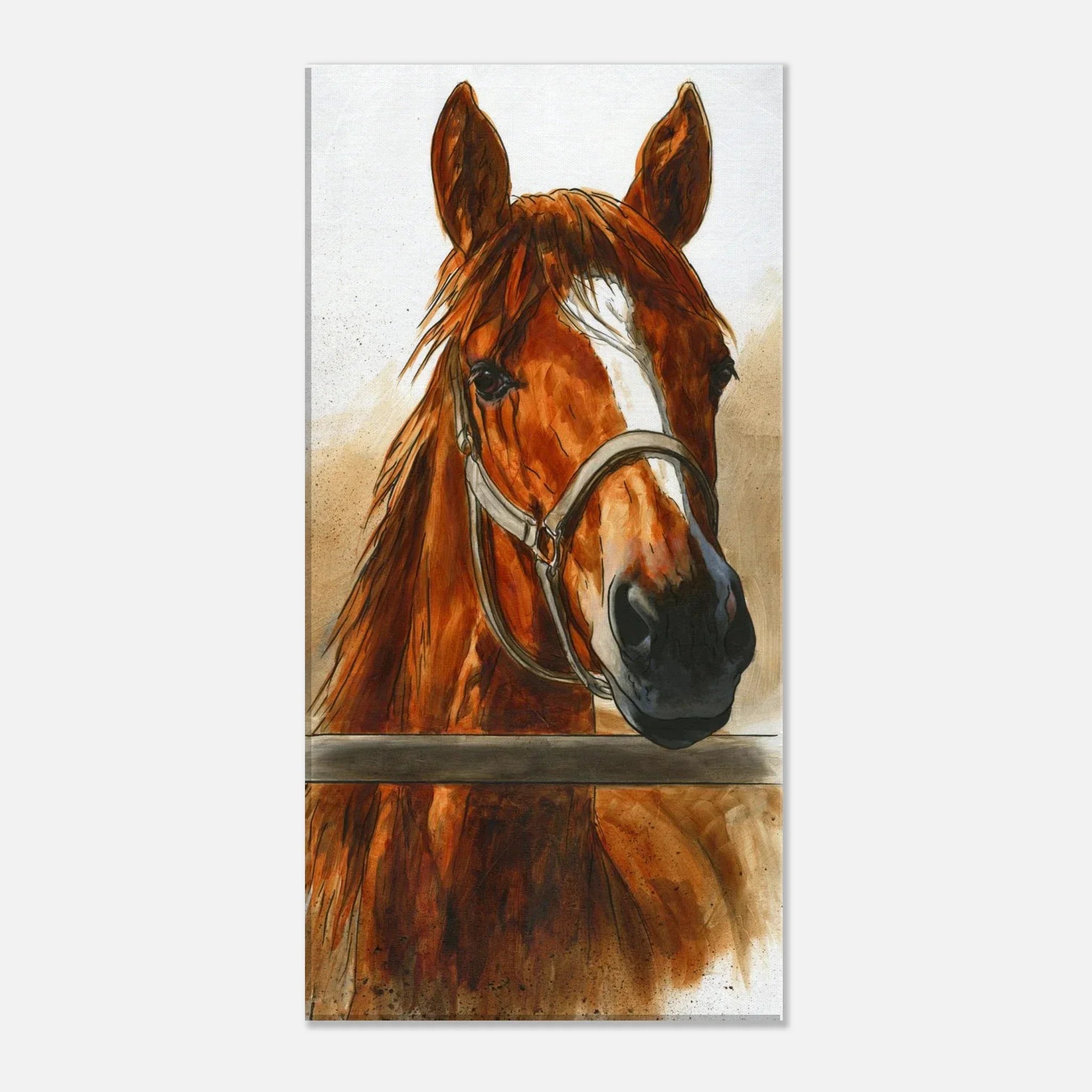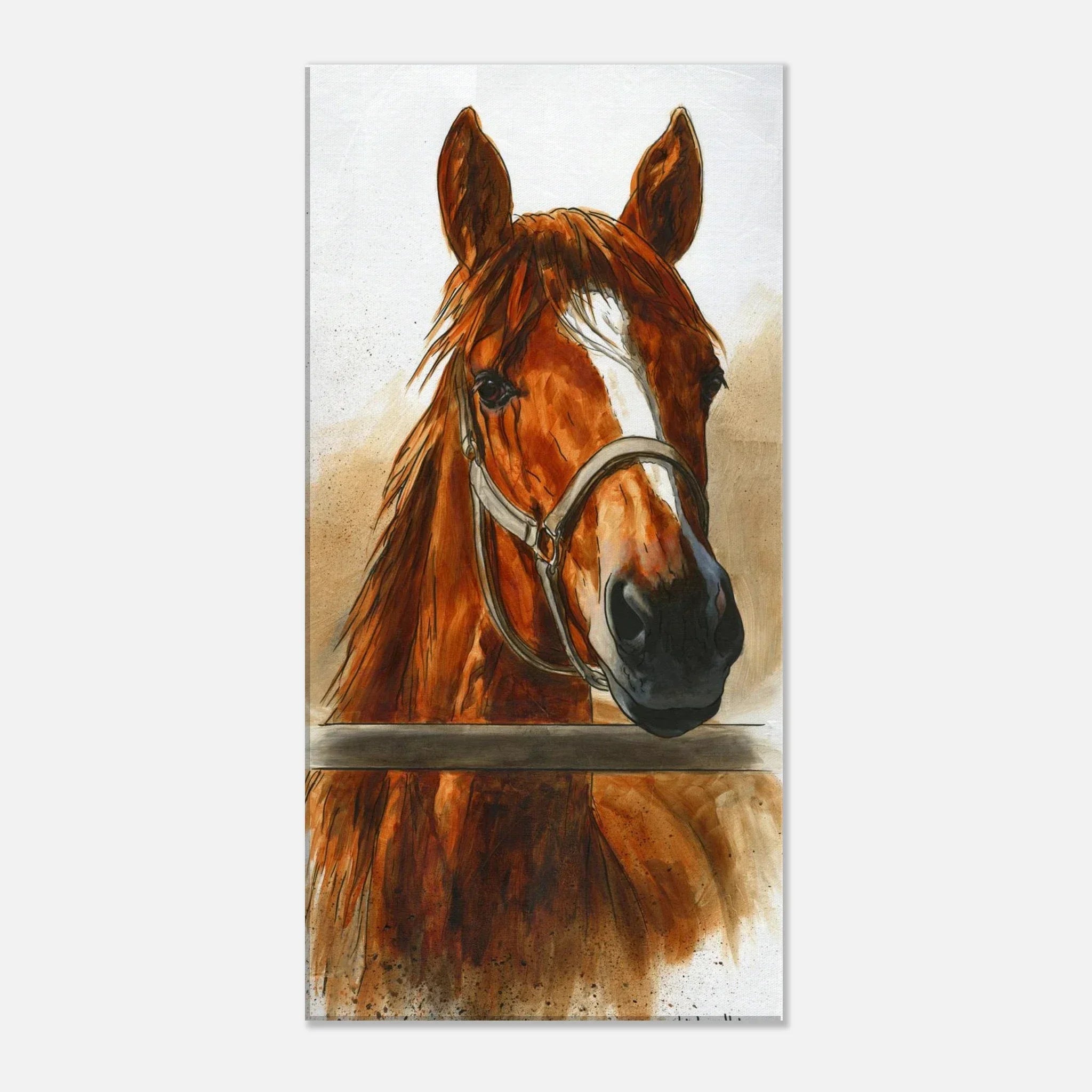 Discover the captivating allure of our The Gate Crew - Alert canvas print, featuring a stunning depiction of a beautiful horse at the gate. This artwork is perfect for horse lovers and adds a touch of elegance to any space.